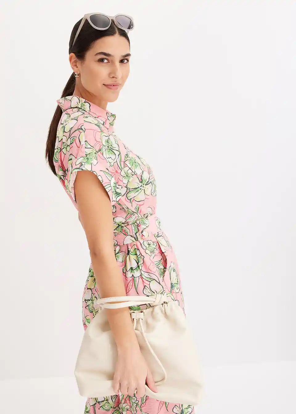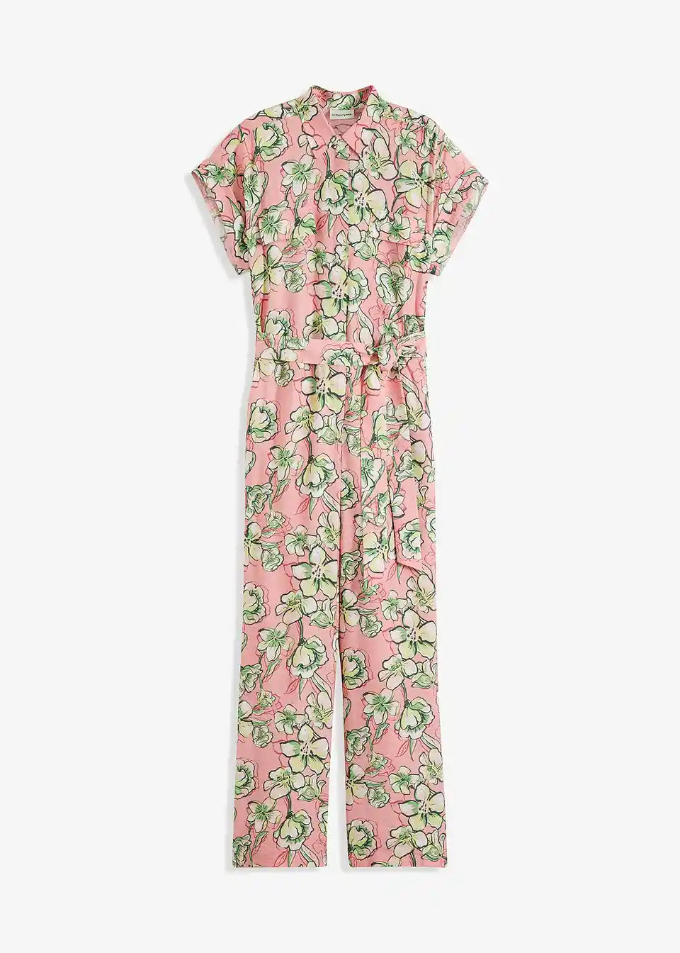 Jumpsuit s spuščeni rokavi z zavihki in z zapenjanjem na gumbe
