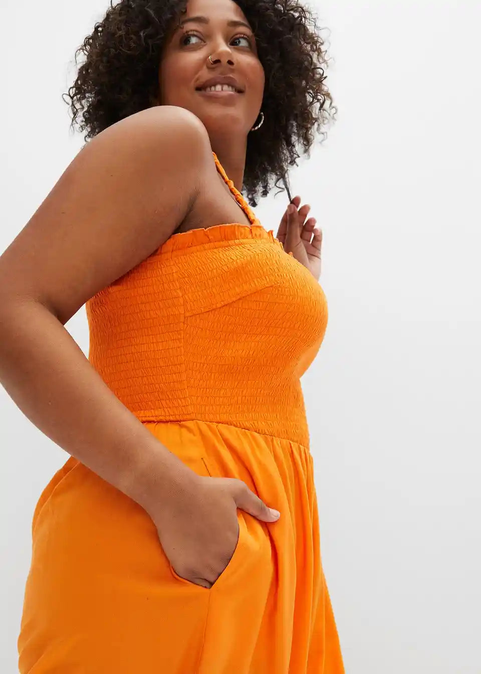 Poletni jumpsuit s smokom in snemljivimi naramnicami