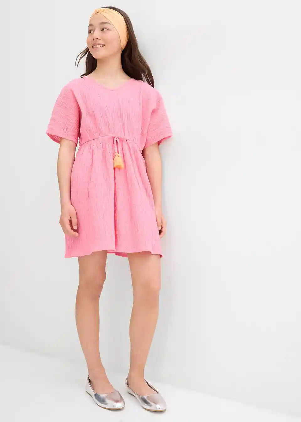 Poletna obleka za dekleta iz strukturiranega Crinkle iz čistega bombaža
