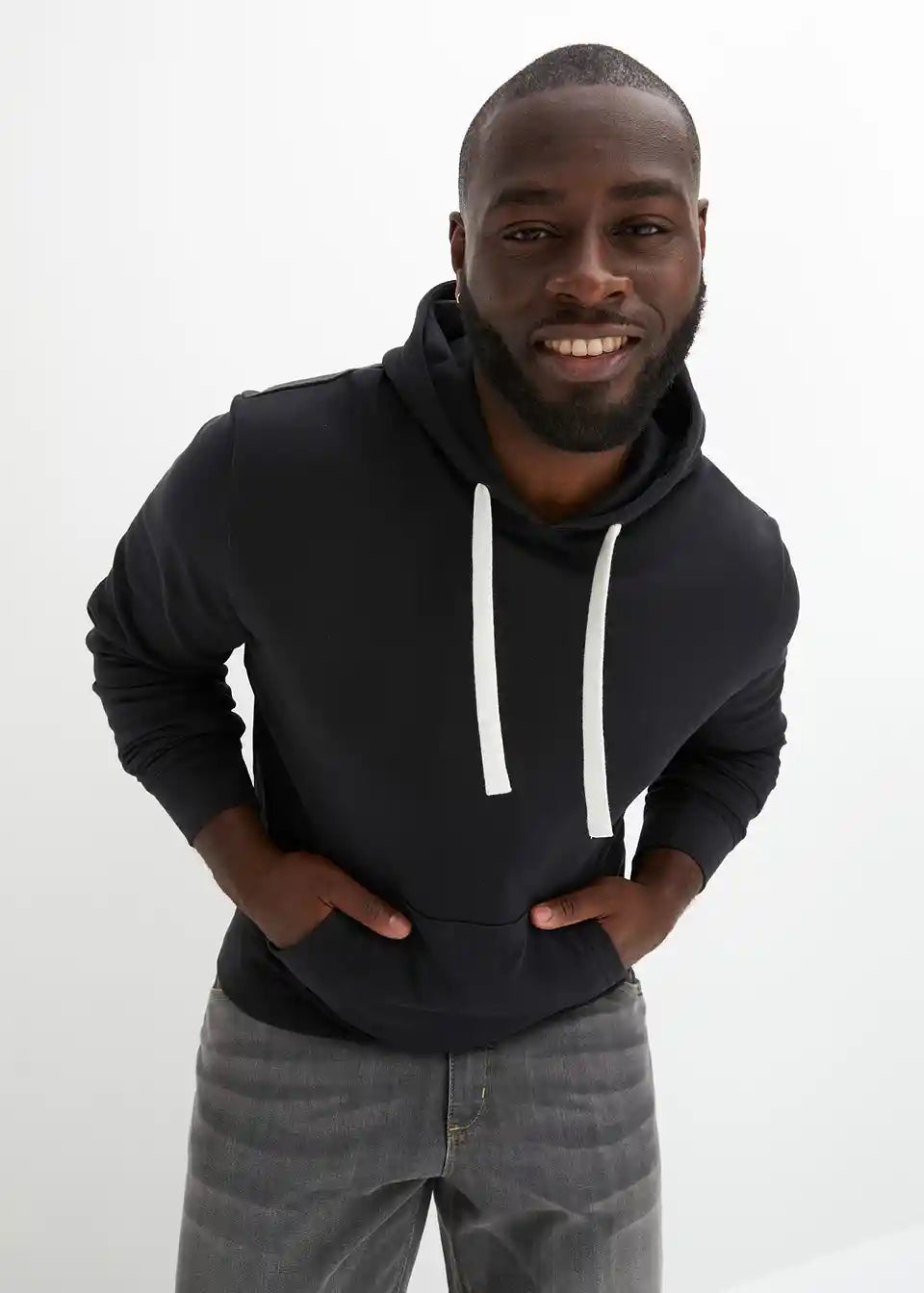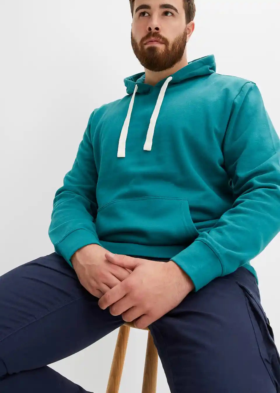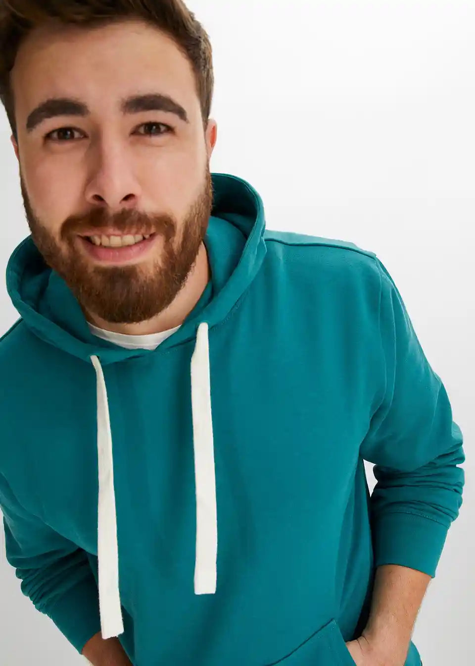 Sodoben basic kapucarski pulover s kontrastnimi vrvicami, znotraj mehko brušen