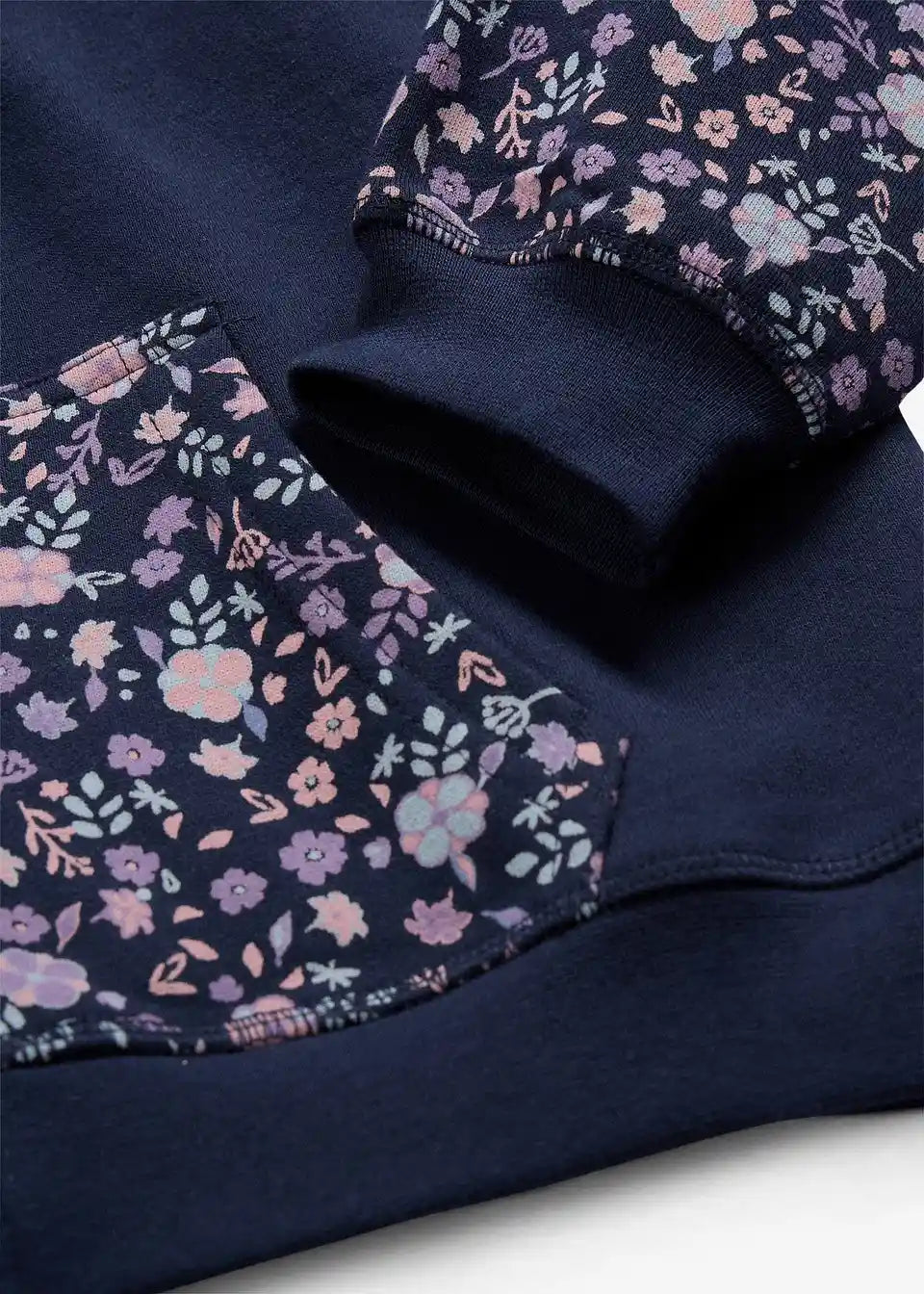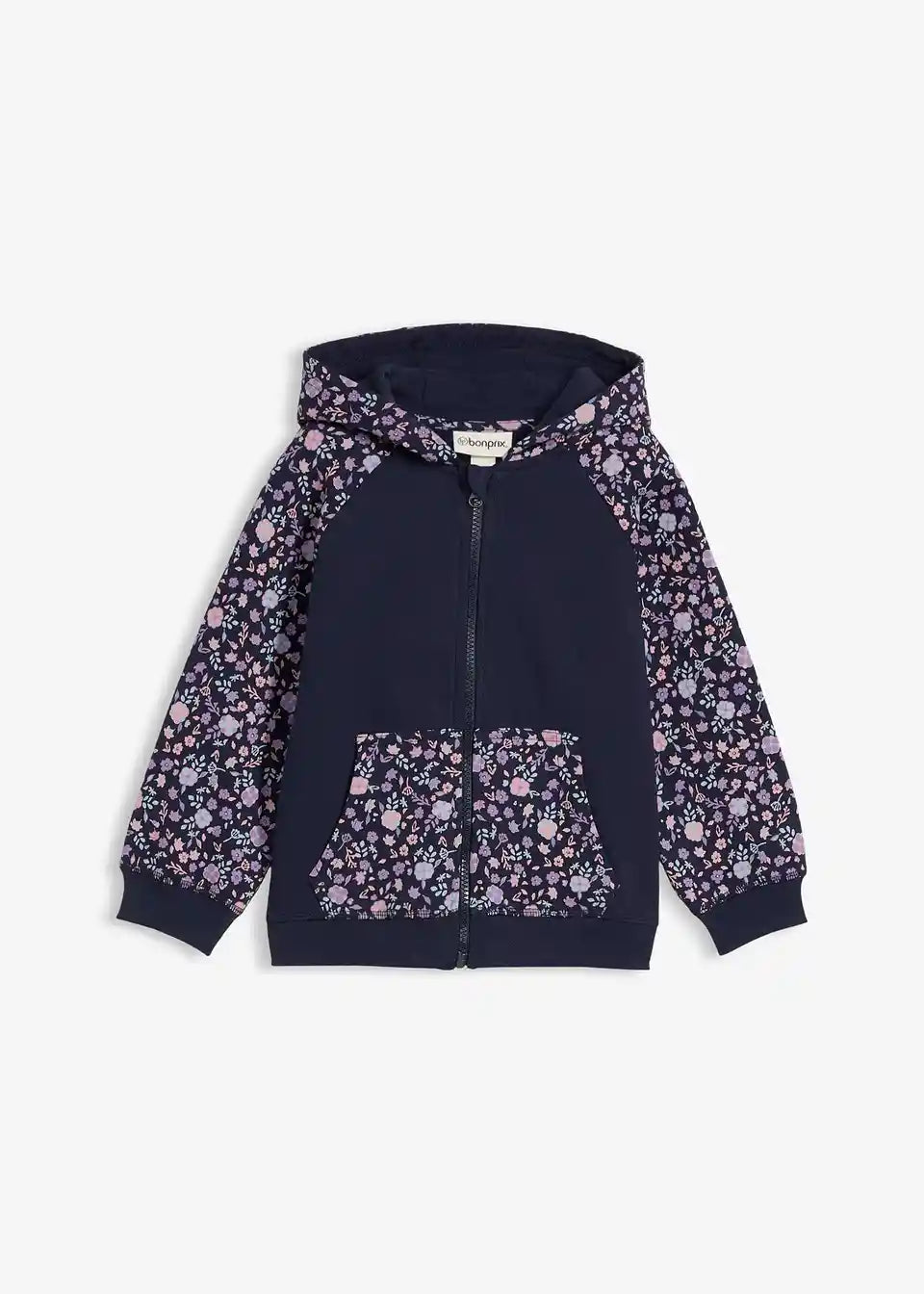 Udobna ohlapna jopa iz trikoja s potiskom po celem, s kengurujskim žepom in praktično zadrgo