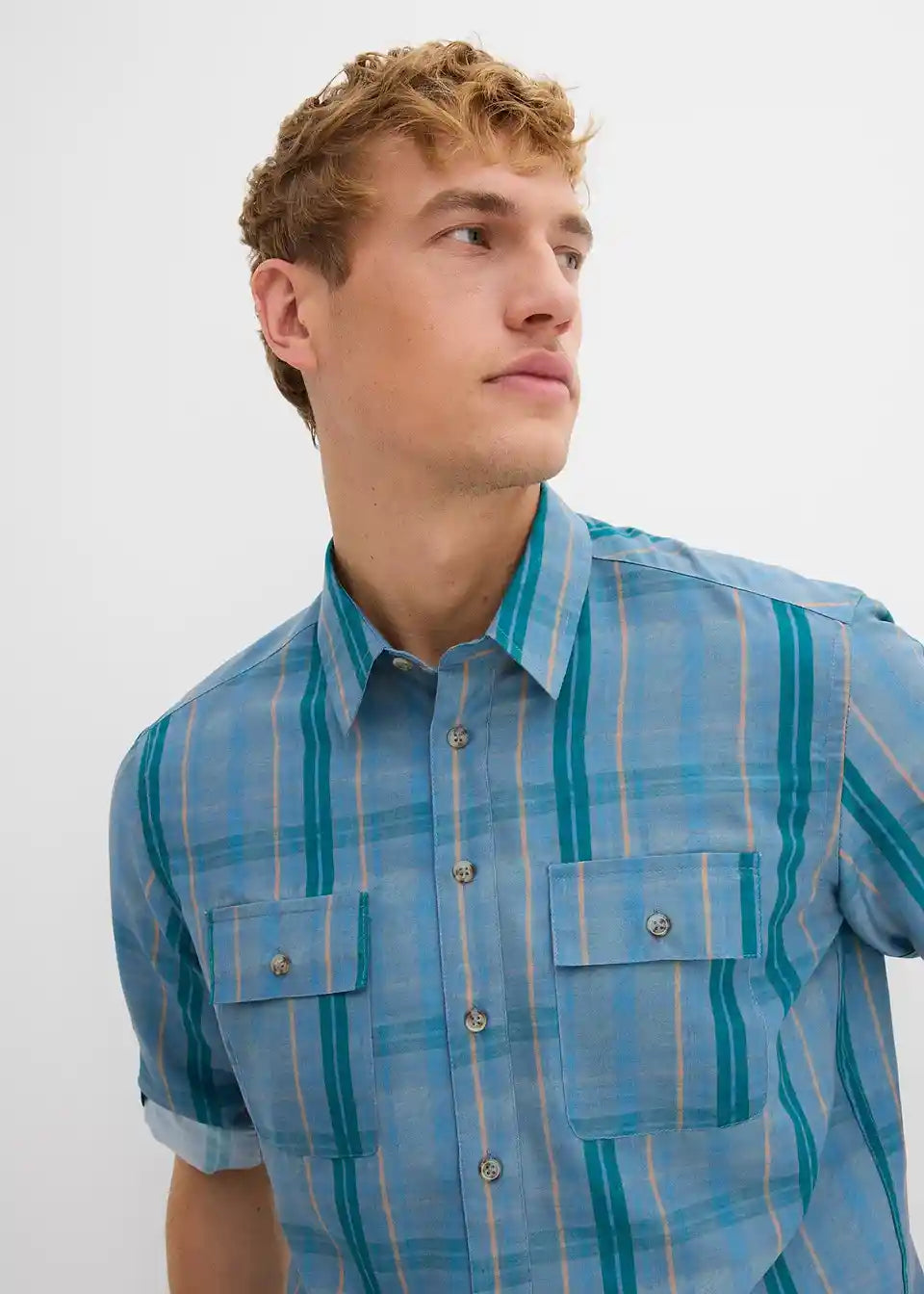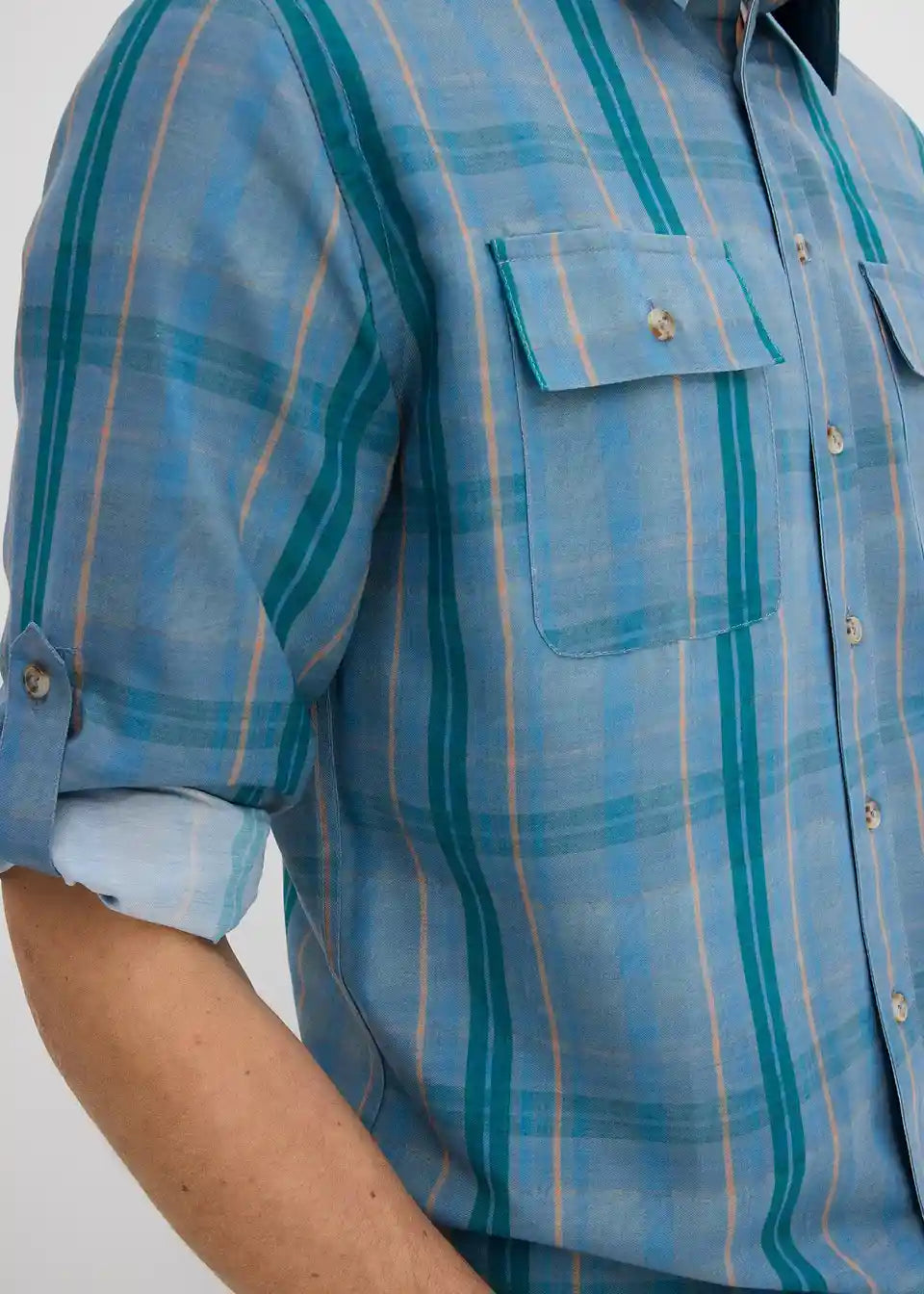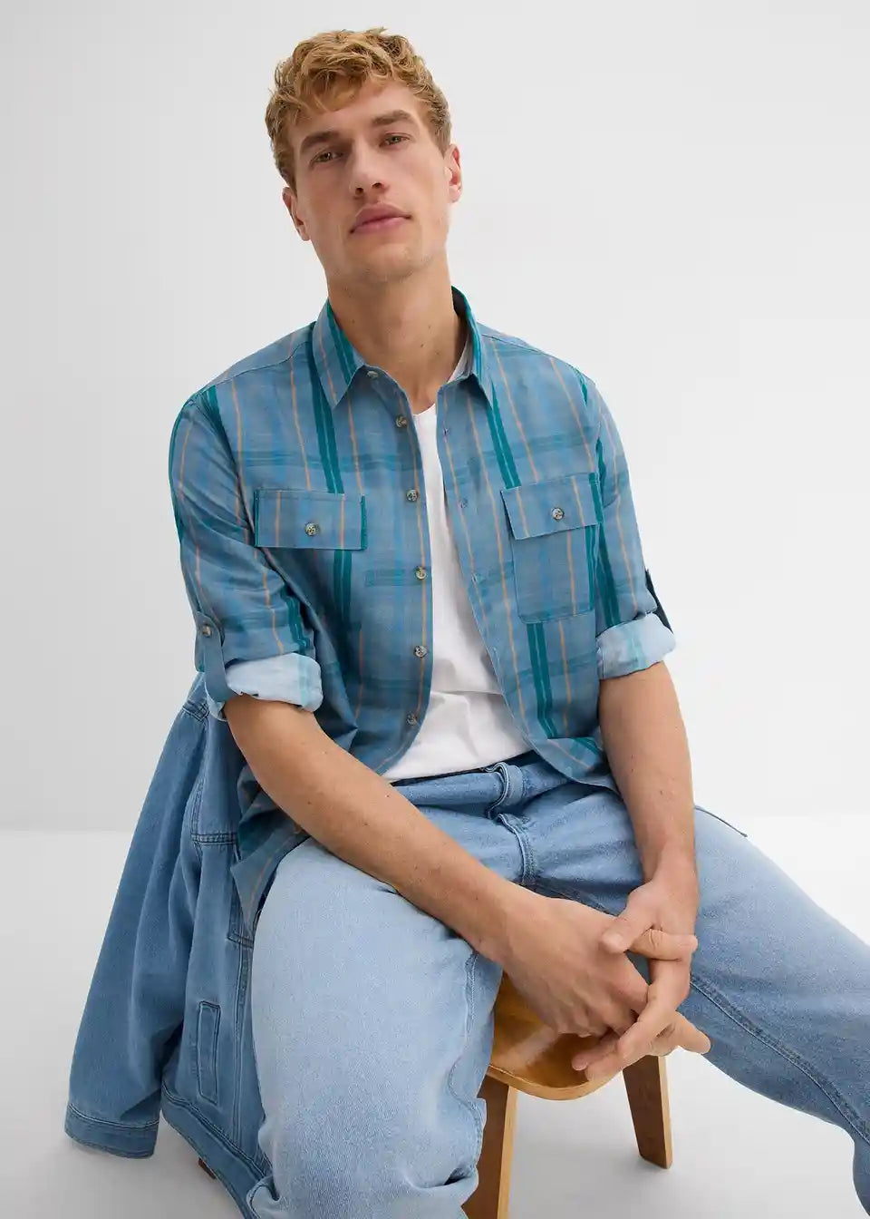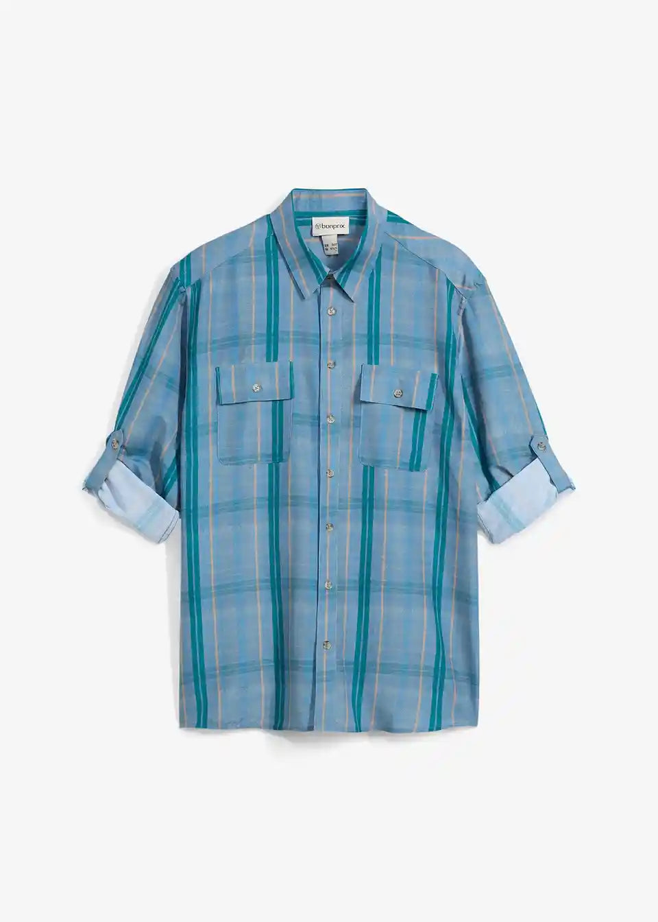 Karirasta srajca z dolgimi rokavi v spranem videzu