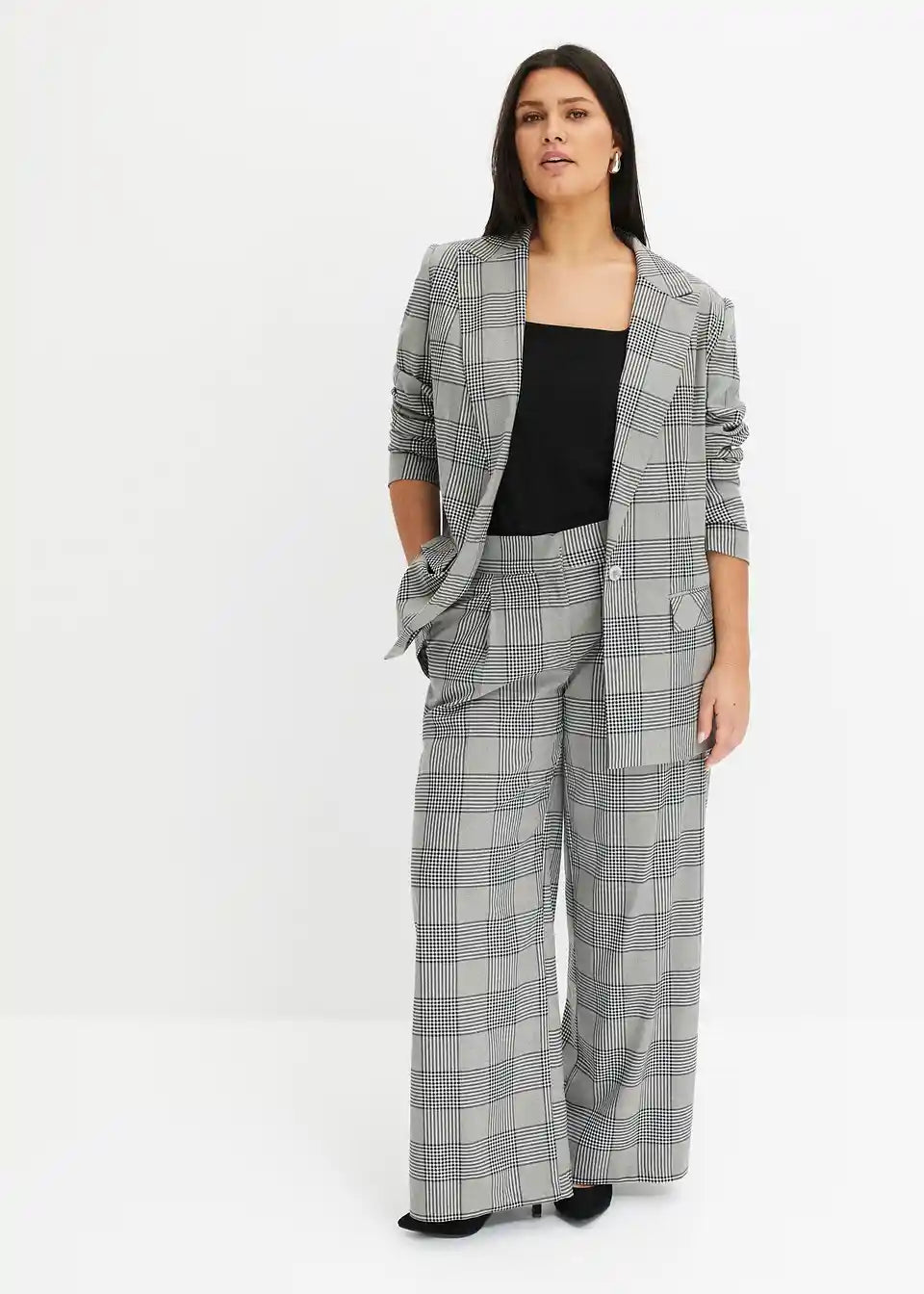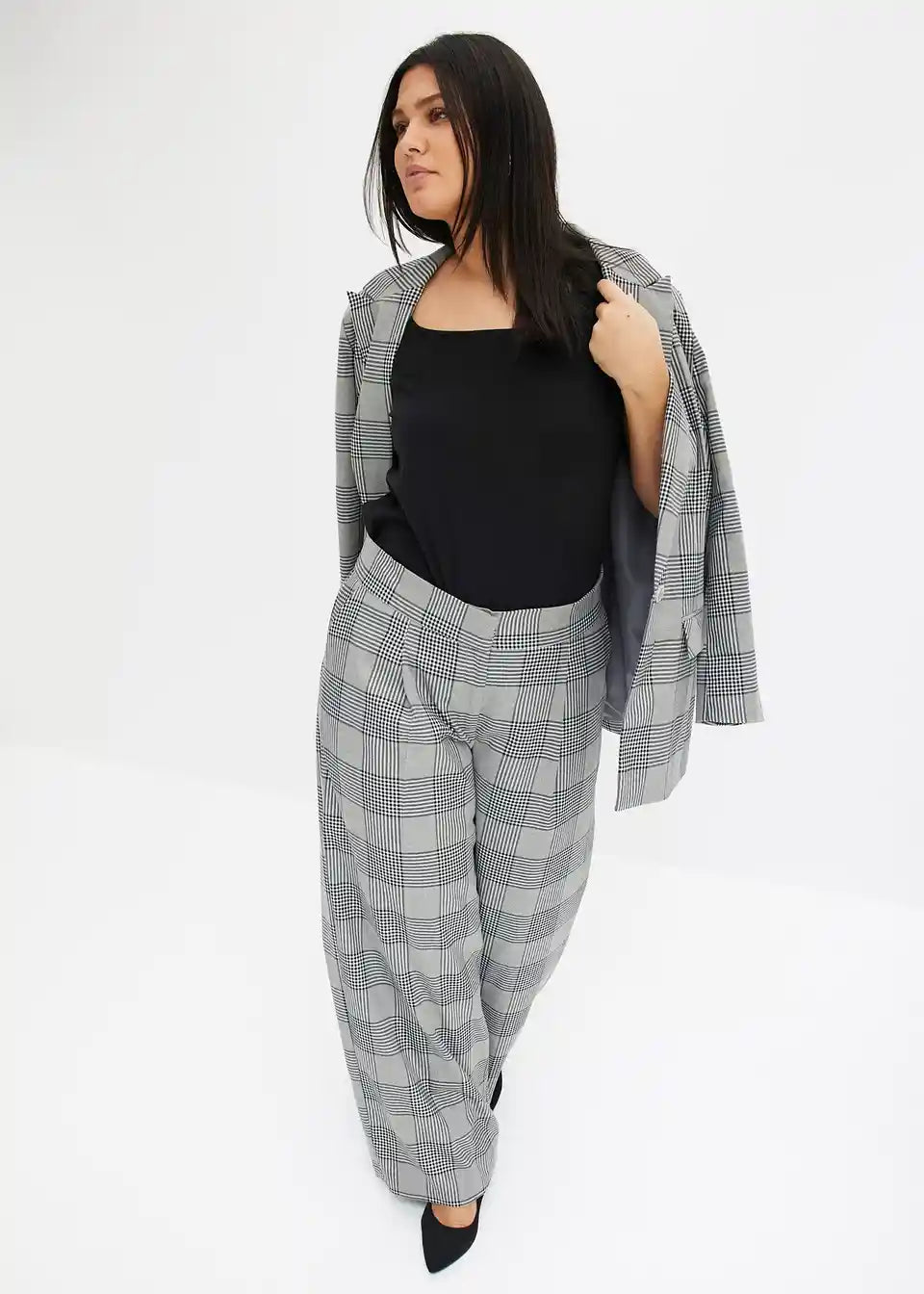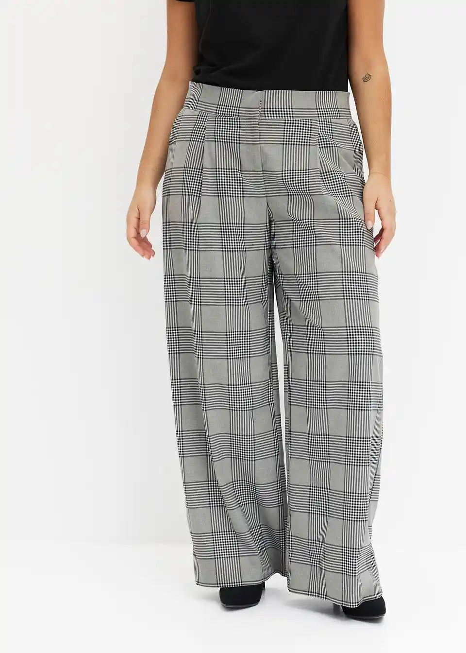 karirane hlače s sprednjimi in zadnjimi robnimi gubami na hlačnicah