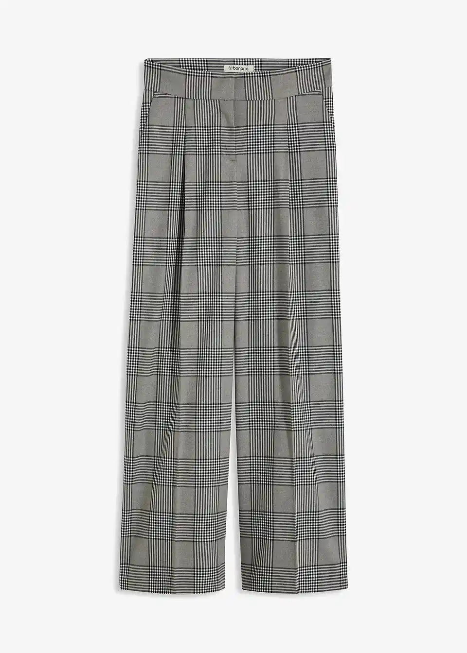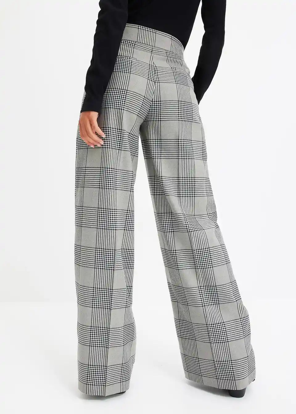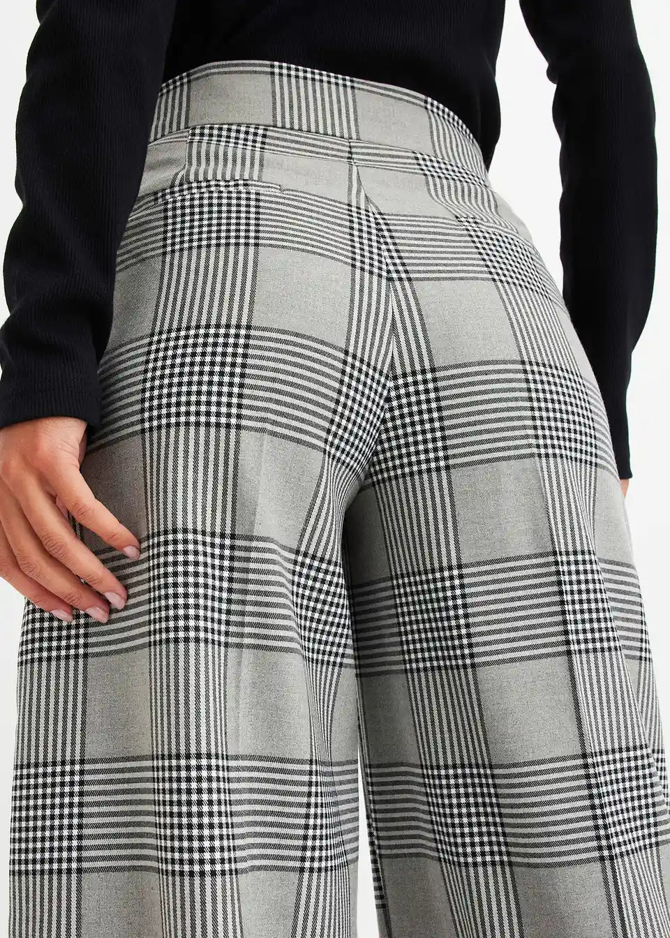 karirane hlače s prešitim robom spredaj in zadaj na hlačnici