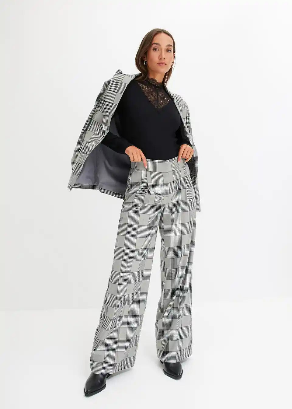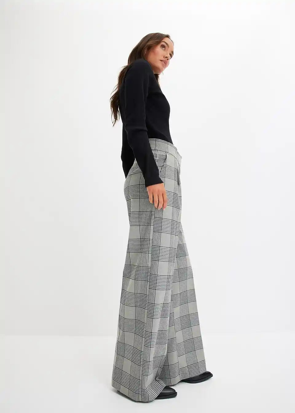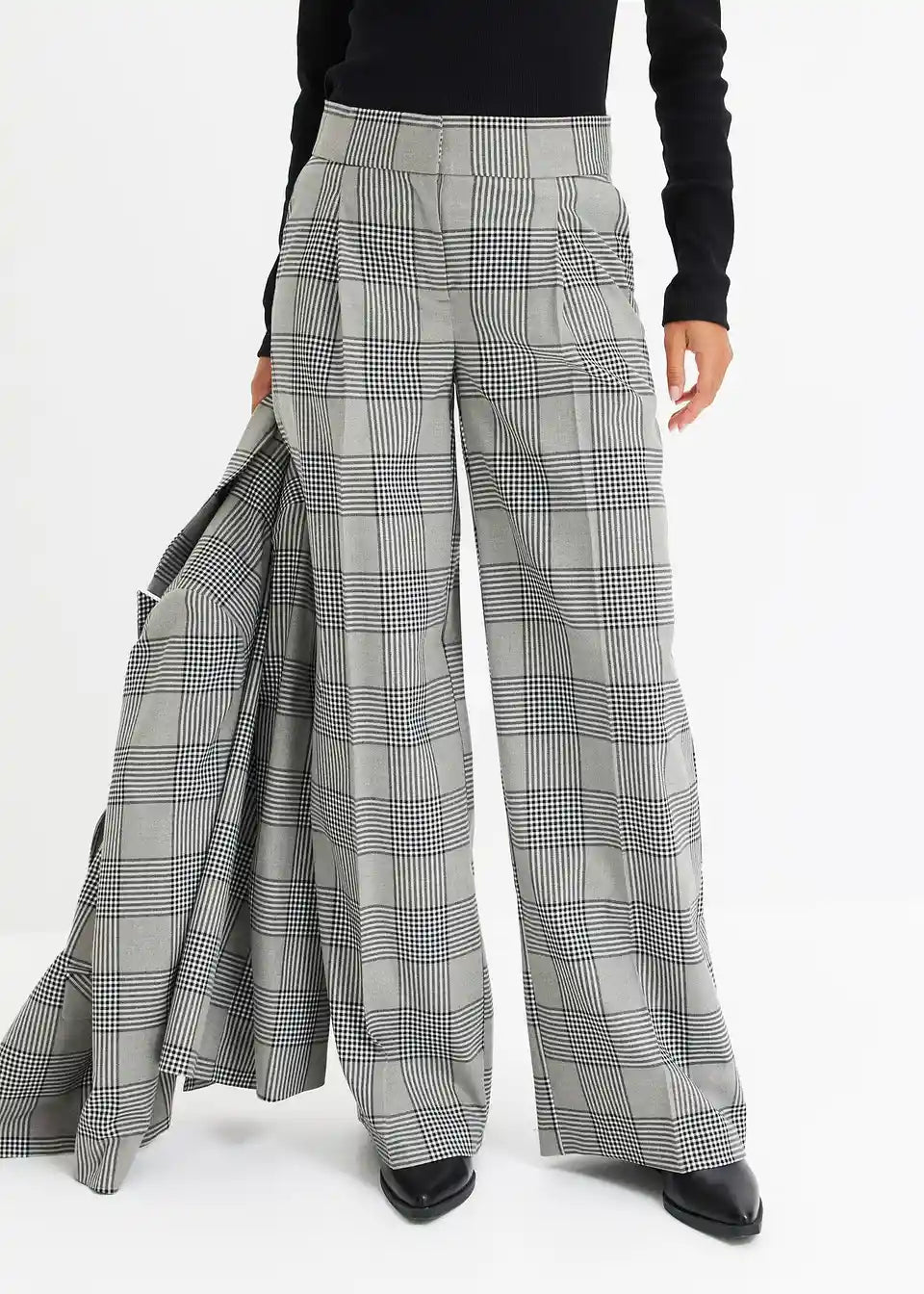 karirane hlače s prešitim robom spredaj in zadaj na hlačnici
