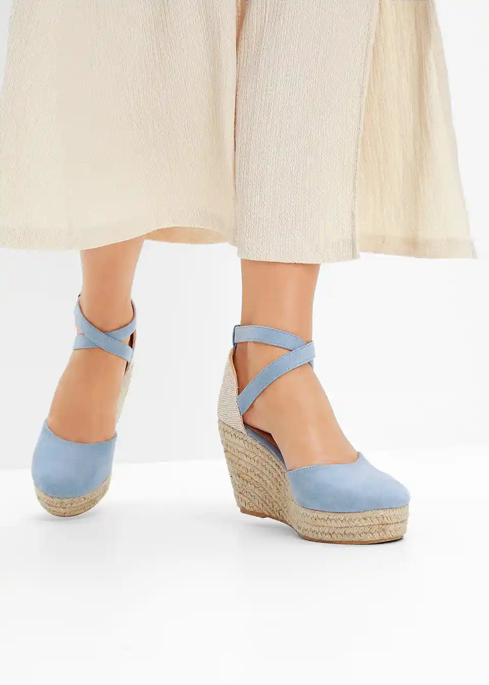 Poletna keilsandaleta v videzu velur usnja