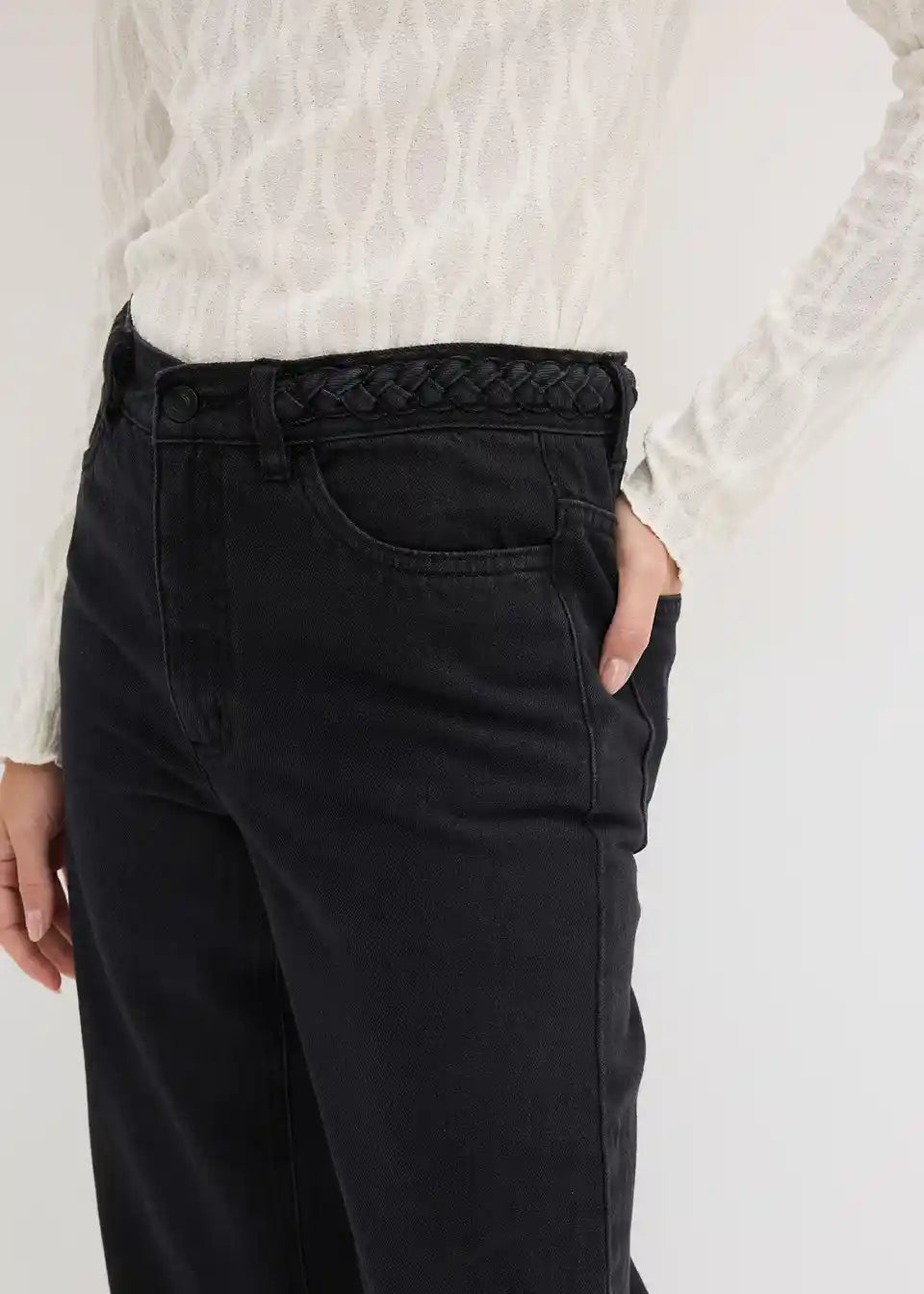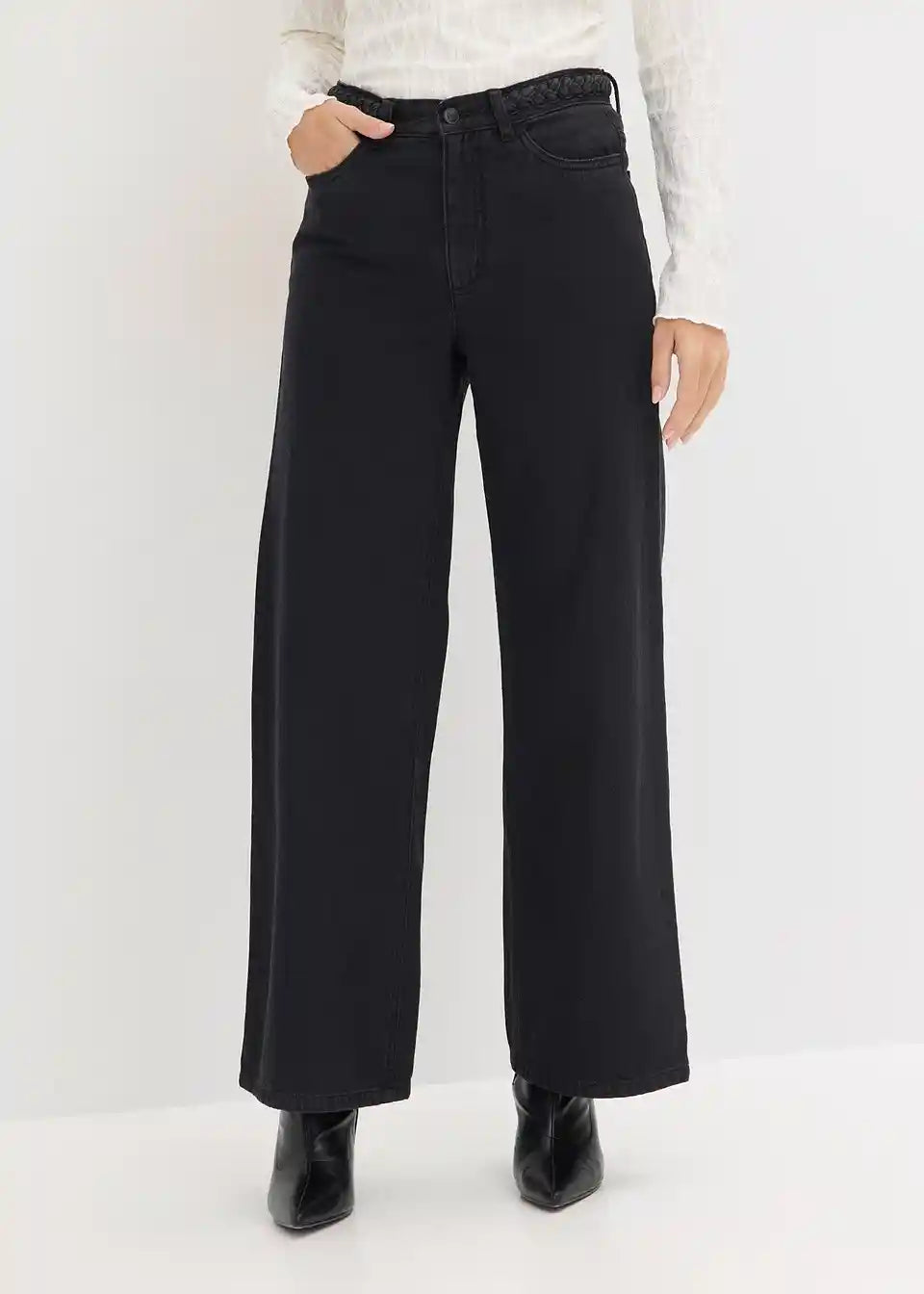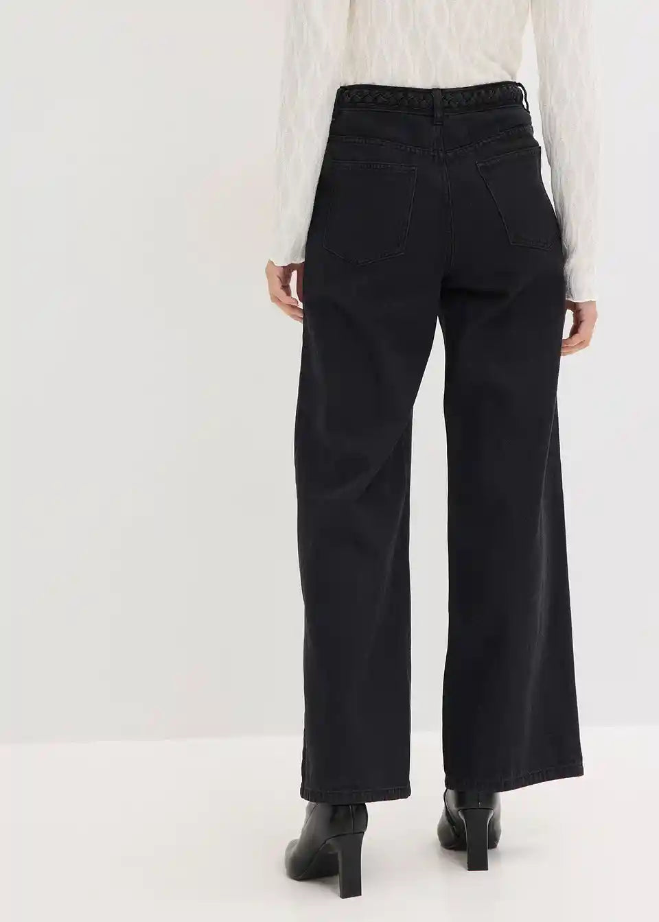 Moderne hlače s širokimi hlačnicami iz kepra iz čistega ekološkega bombaža s prepletenim detajlom