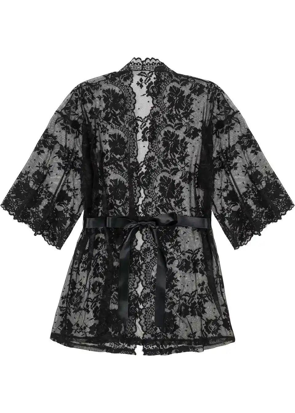 Vau! Ta vroč kimono ovije vaše obline z elegantno čipko in omogoča, da obline rahlo prosevajo. Razkošna satenasta pentlja okrasi vaš pas, ki jo lahko zavežete na različne načine. Kombinirajte kimono preko svoje pižame ali ga združite z ujemajočimi spodnjimi oblačili za nepozabno noč.