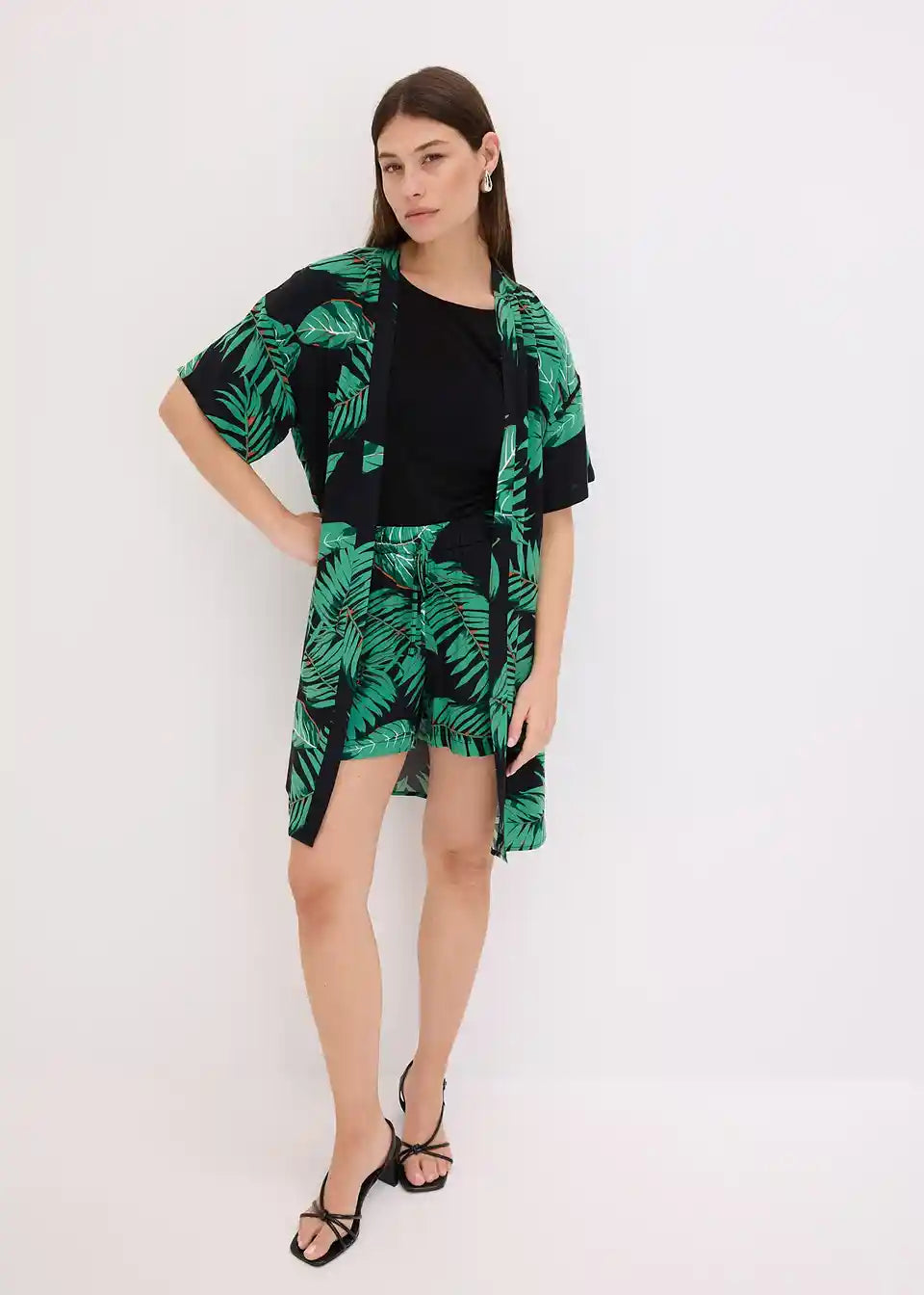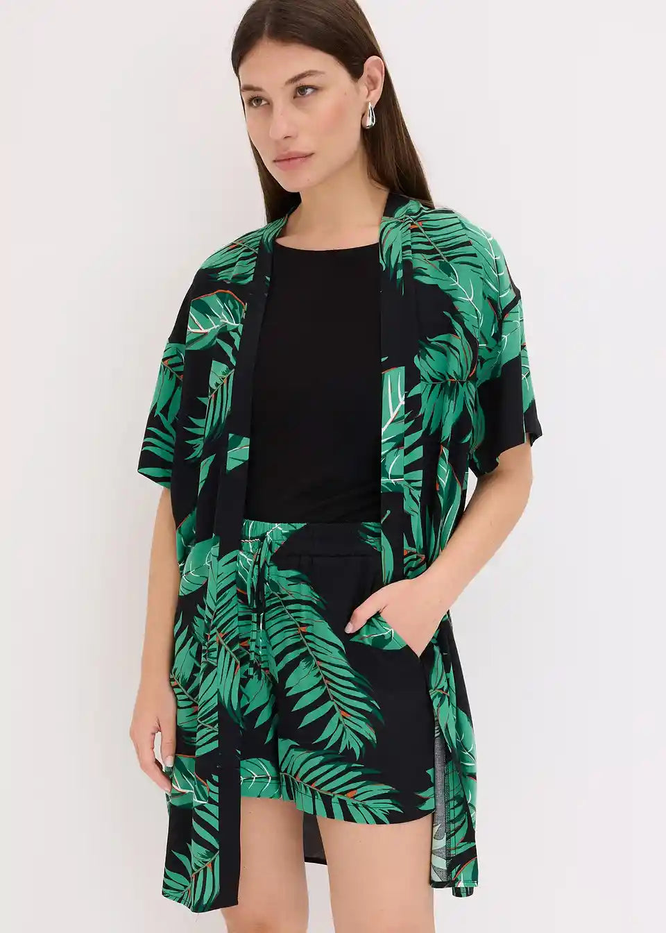 cvjetno potiskana Kimono bluza brez zapenjanja iz tekoče viskoze