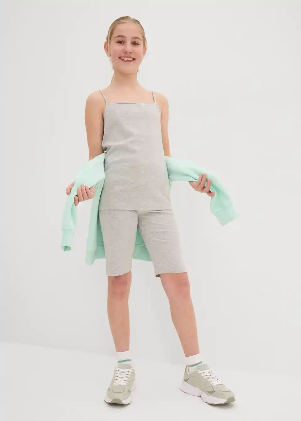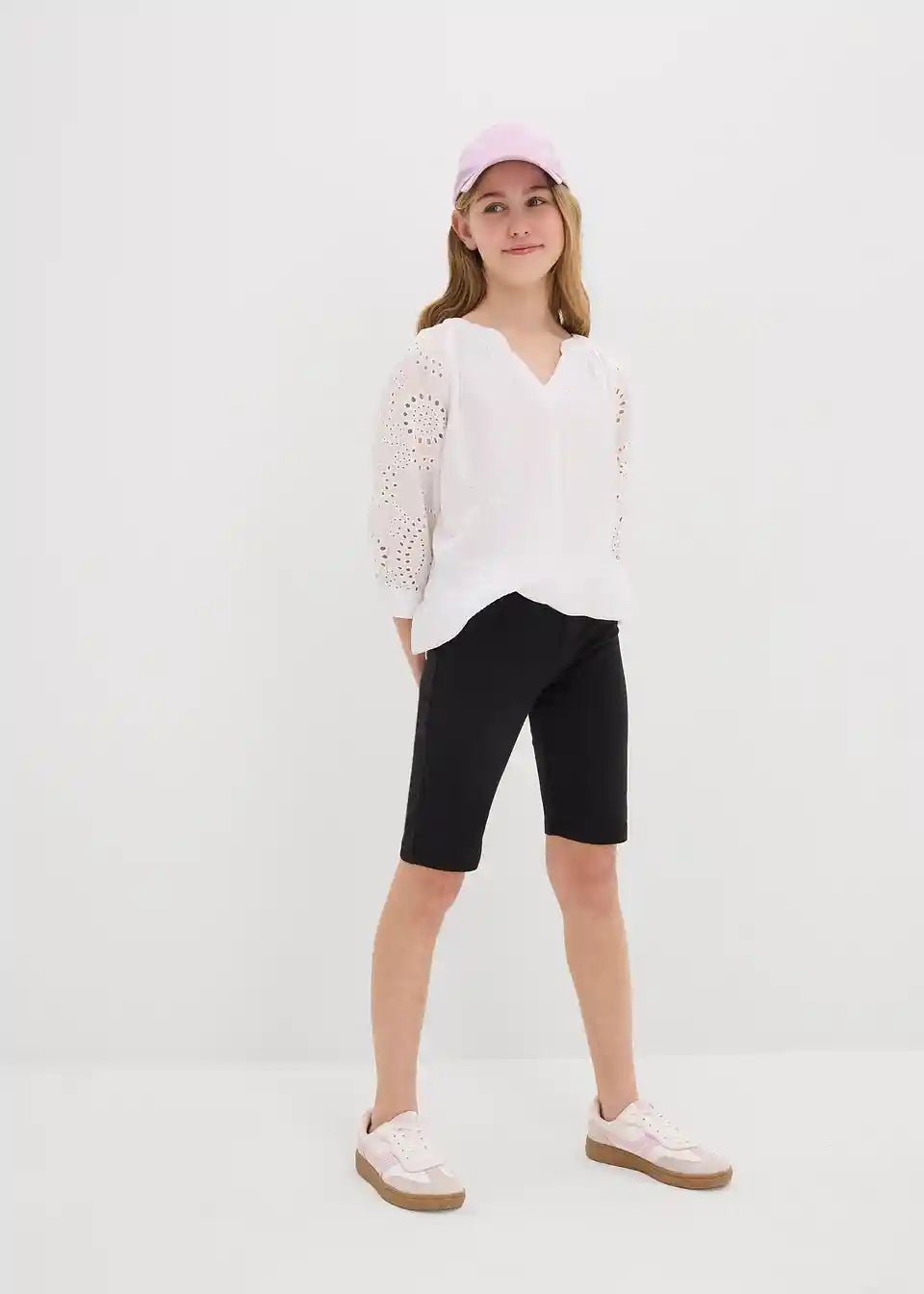 Preproste kolesarske hlače za dekleta, iz elastične mešanice bio bombaža, vsestransko kombinirane