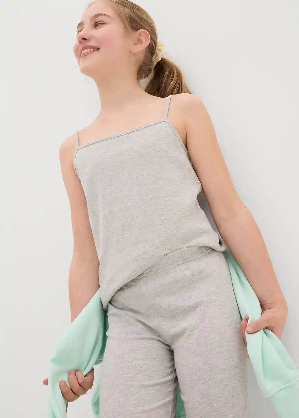 Material:svetlo siva melirana: 90% bombaž (ekološki), 5% elastan, 5% viskoza, koralna: 95% bombaž (ekološki), 5% elastan