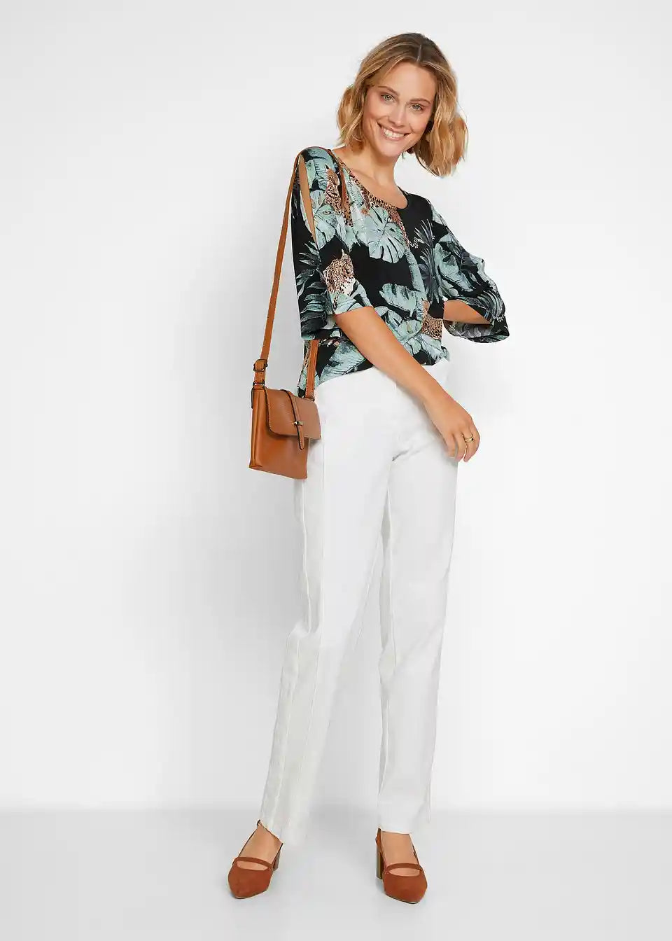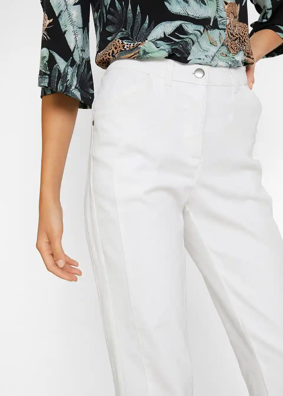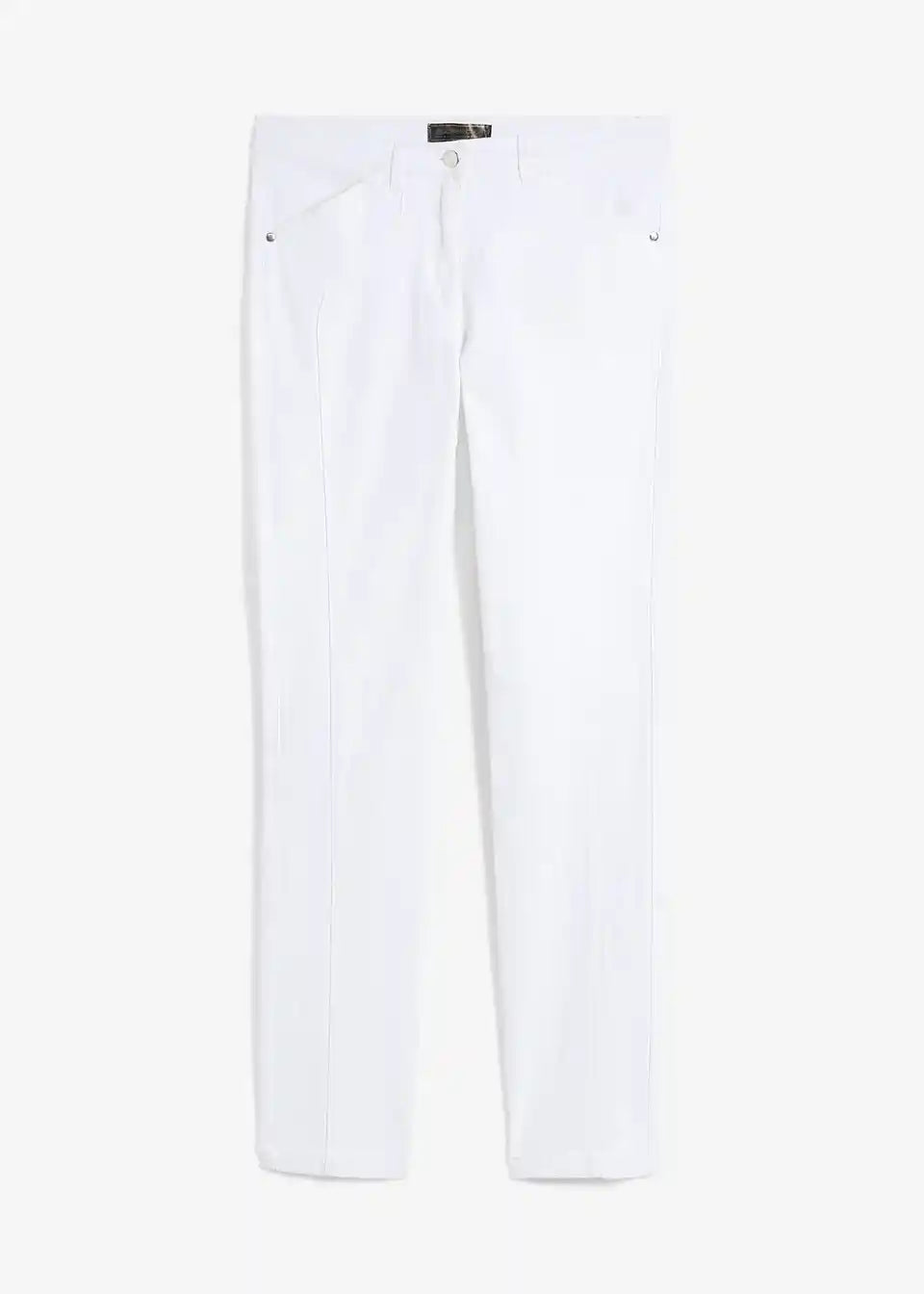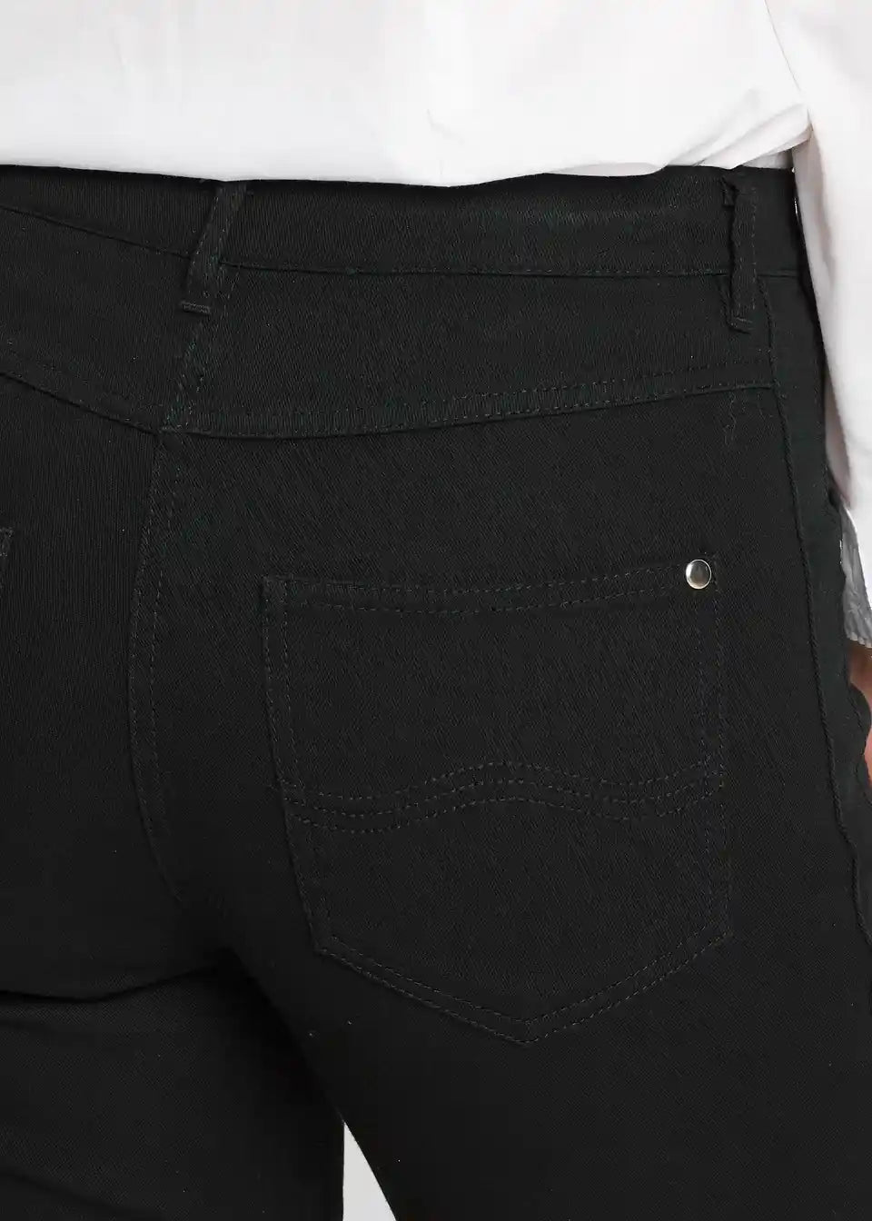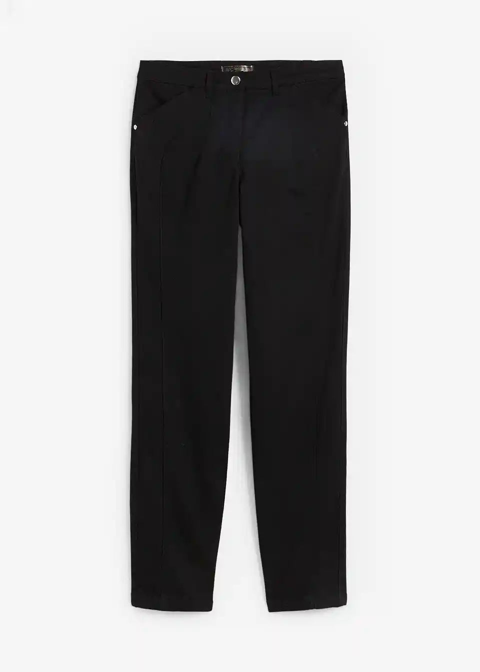 prilagodljive postavi, s podaljšajočimi prečnimi šivi, udobna višina pasu, na voljo v dveh dolžinah, notranja dolžina hlačnic N pri vel. 38 cca. 81,5 cm in K notranja dolžina cca. 76,5 cm, pralne v pralnem stroju,
