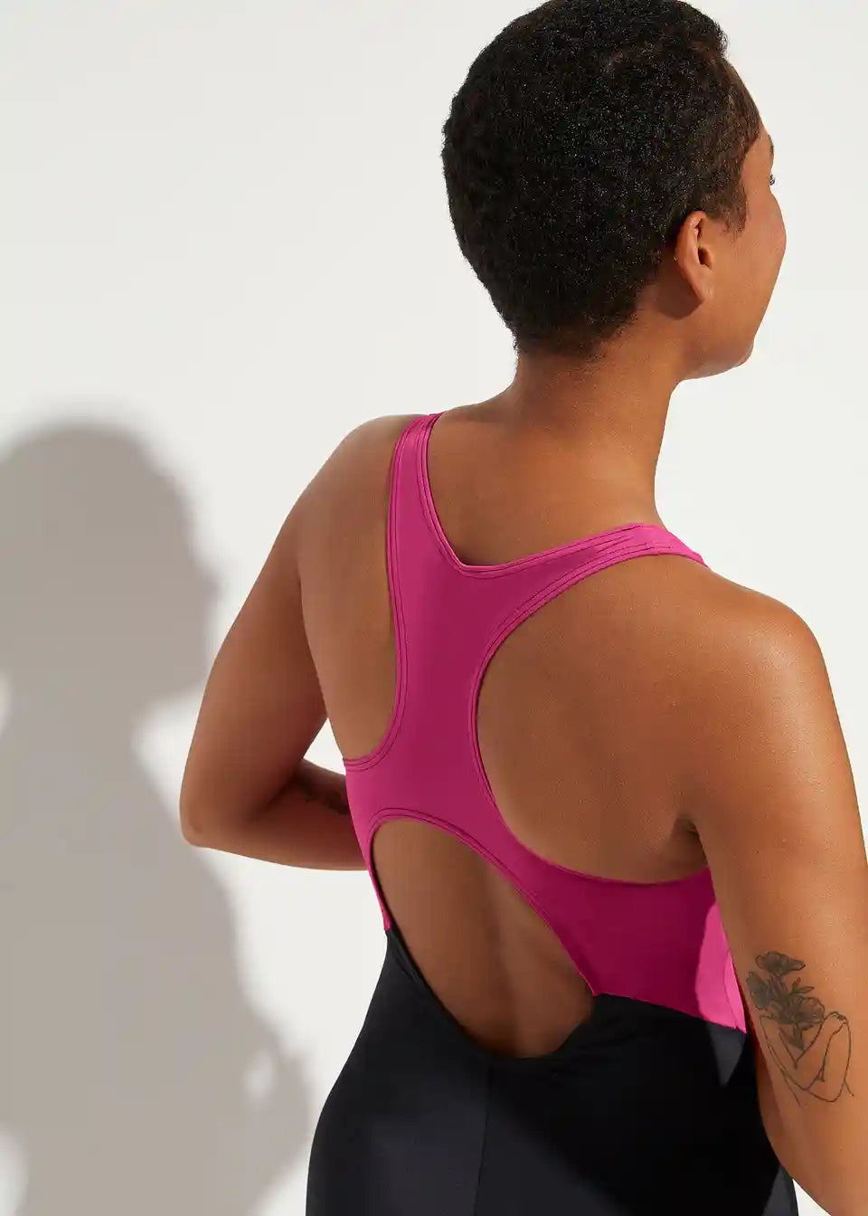Izrez zadaj:z visoko zaprtim športno krojenim hrbtnim delom