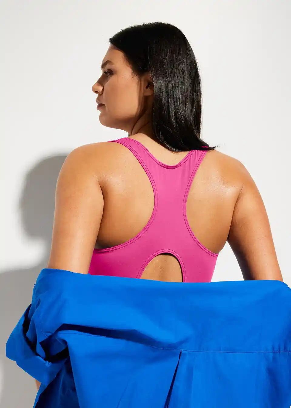 Izrez zadaj:z visoko zaprtim športno krojenim hrbtnim delom