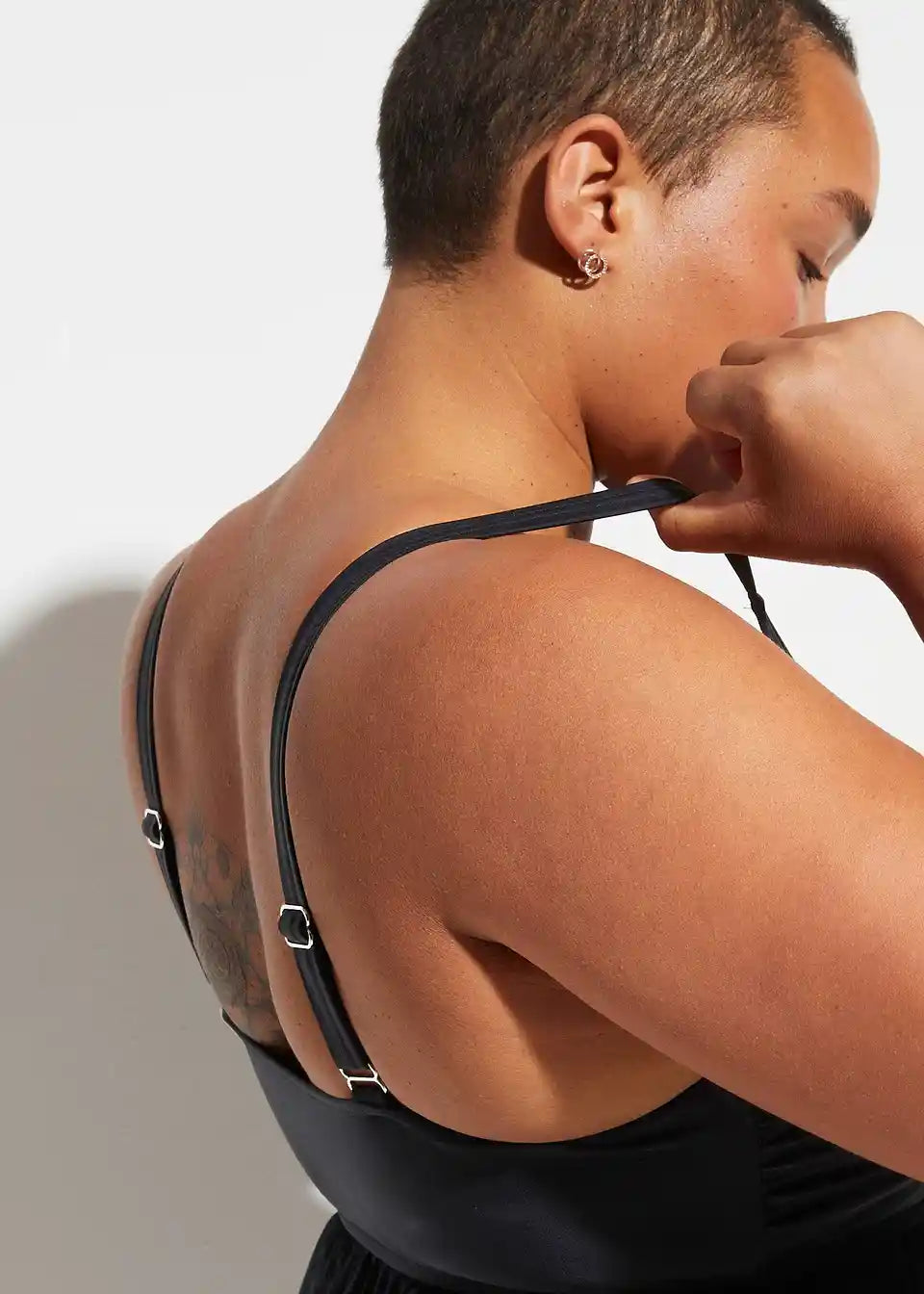 Detajli:s podlogo na prsih, podprsno elastiko, nastavljivo širino in integriranimi kopalkami