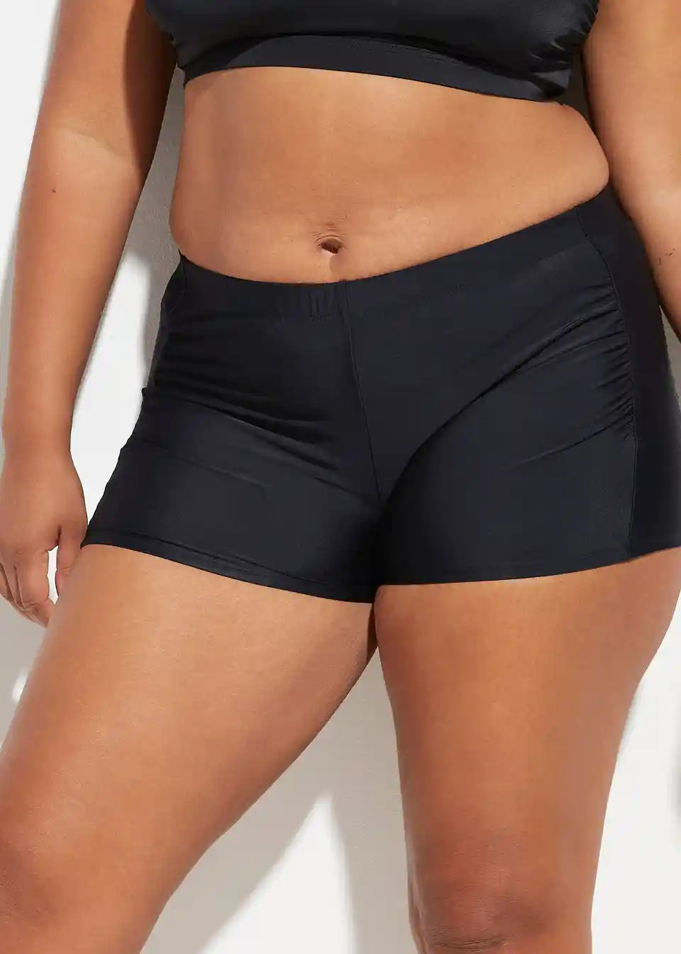 Te bikini hlačke znamke bpc selection v elegantni panty obliki prepričajo s svojo jasno silhueto in širokim pasom za odlično prileganje. Majhne naborke vzdolž obeh stranskih šivov dodajajo privlačne detajle. Podloga v razkoraku dopolnjuje udobne bikini hlačke. Ta model omogoča individualno sestavljanje kopalk in je še posebej primeren za ženske s postavo tipa H.