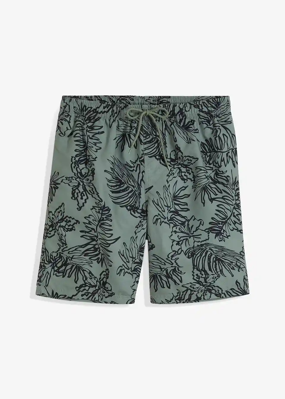 Z elastičnim pasom in dodatnim vezalnim trakom. Stranski žepi. Z notranjo podlogo z notranjim slipom in majhnim žepkom za kovance iz mrežaste tkanine.