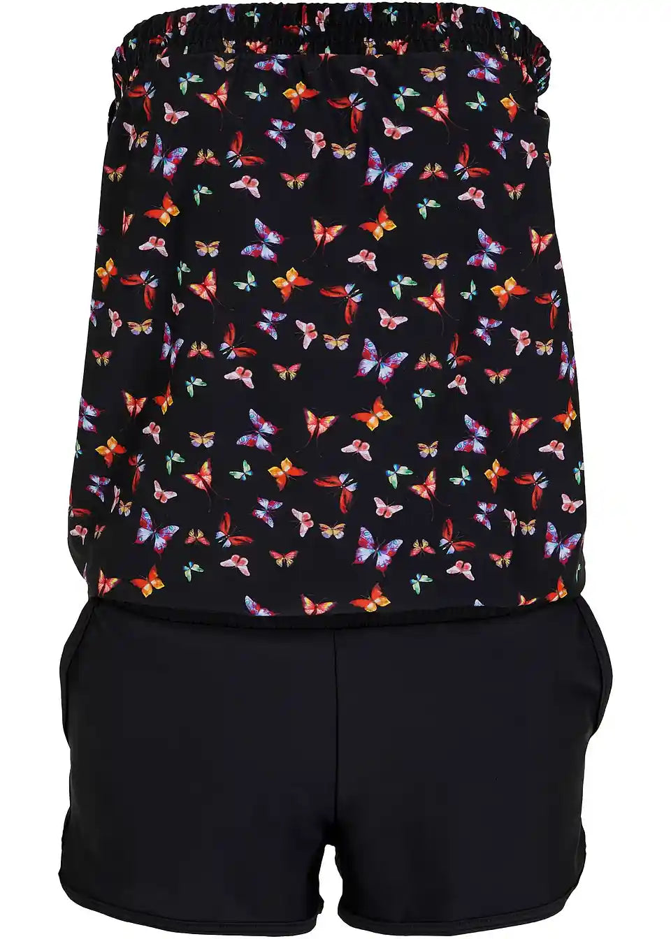 Kombinezon iz kopalniškega materiala. Snemljive in nastavljive naramnice. Odstranljive mehke košarice. Z elastičnim pasom na zgornjem robu in na bokih. Hlačke s všitimi žepi. Integrirane hlačke.