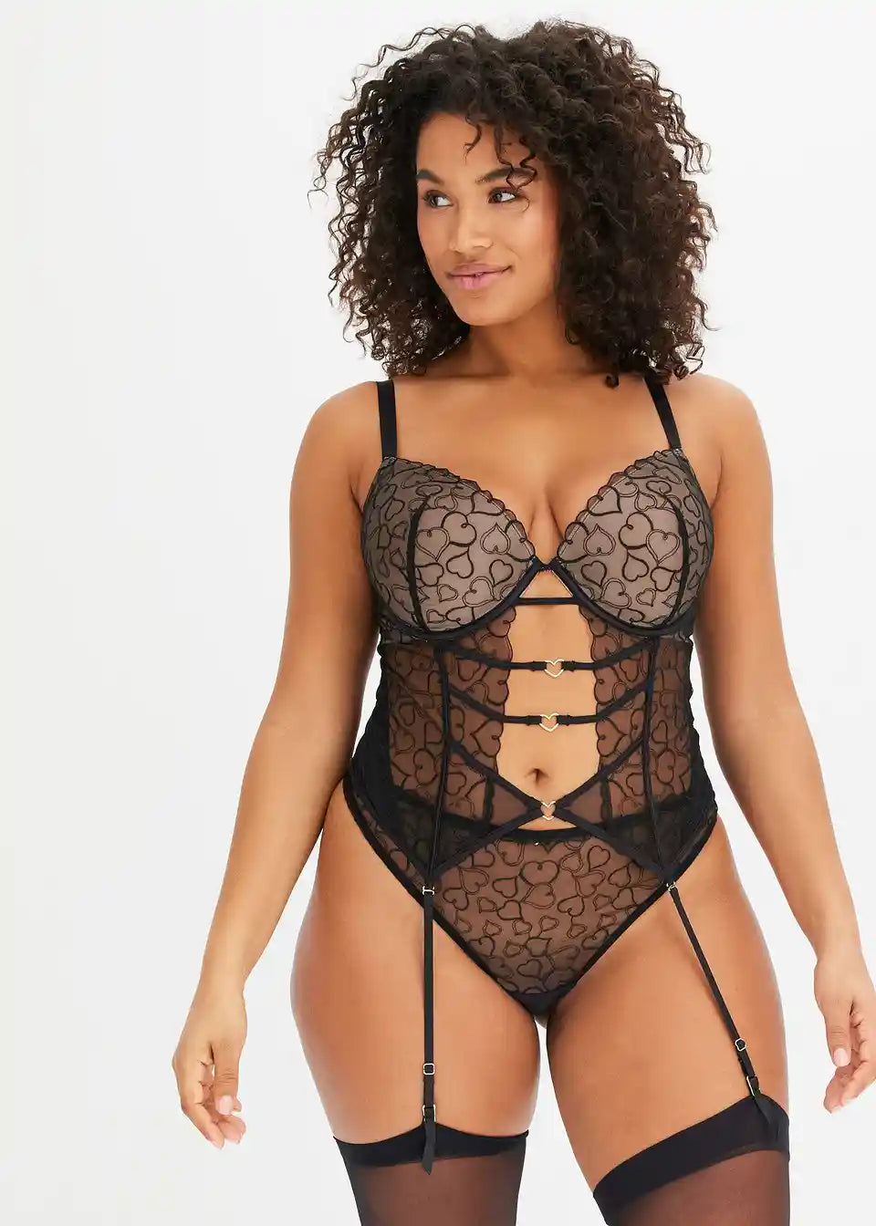 Material:zgornji material: 86% poliamid, 14% elastan, podloga: 100% poliamid, čipka: 100% poliester