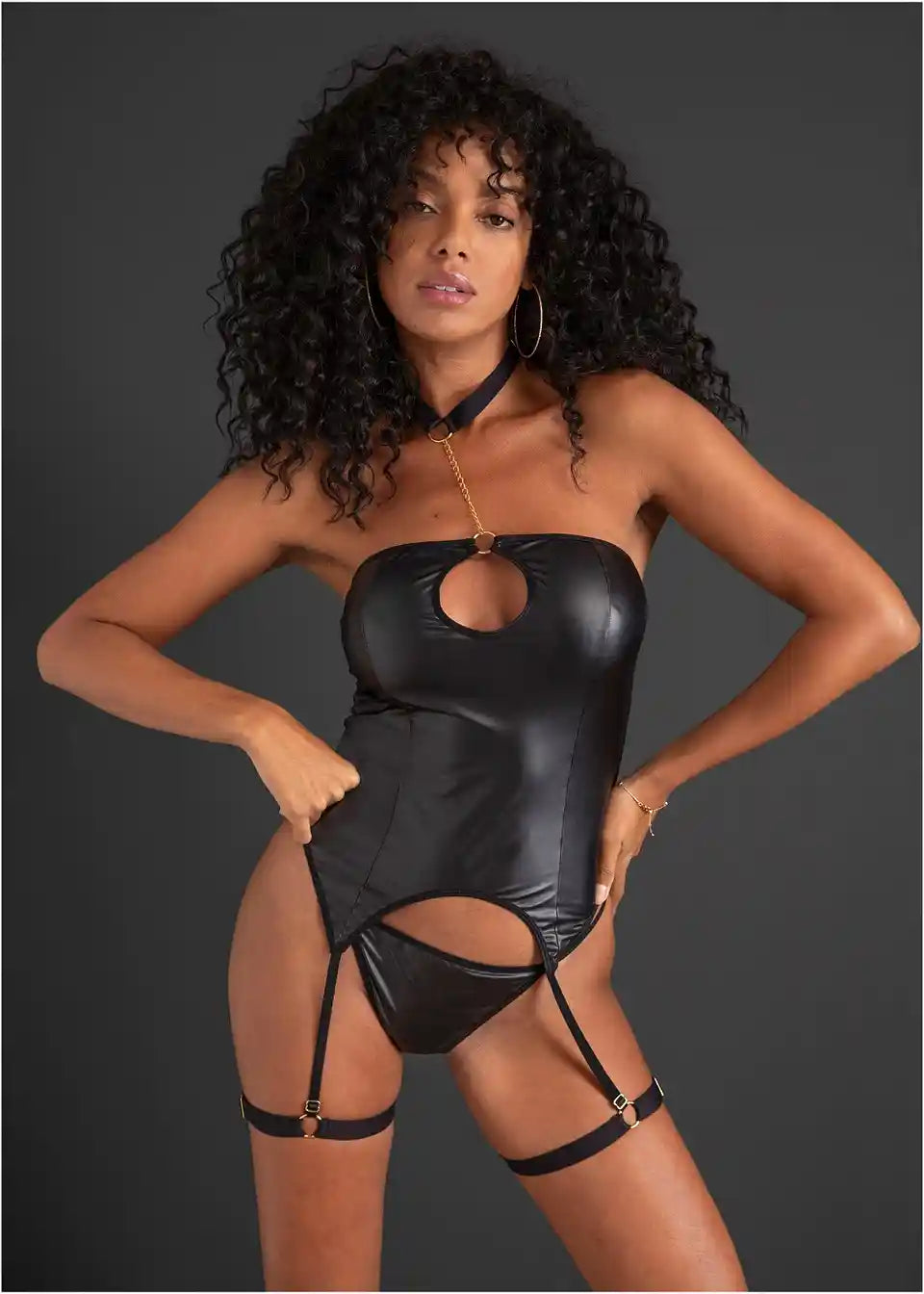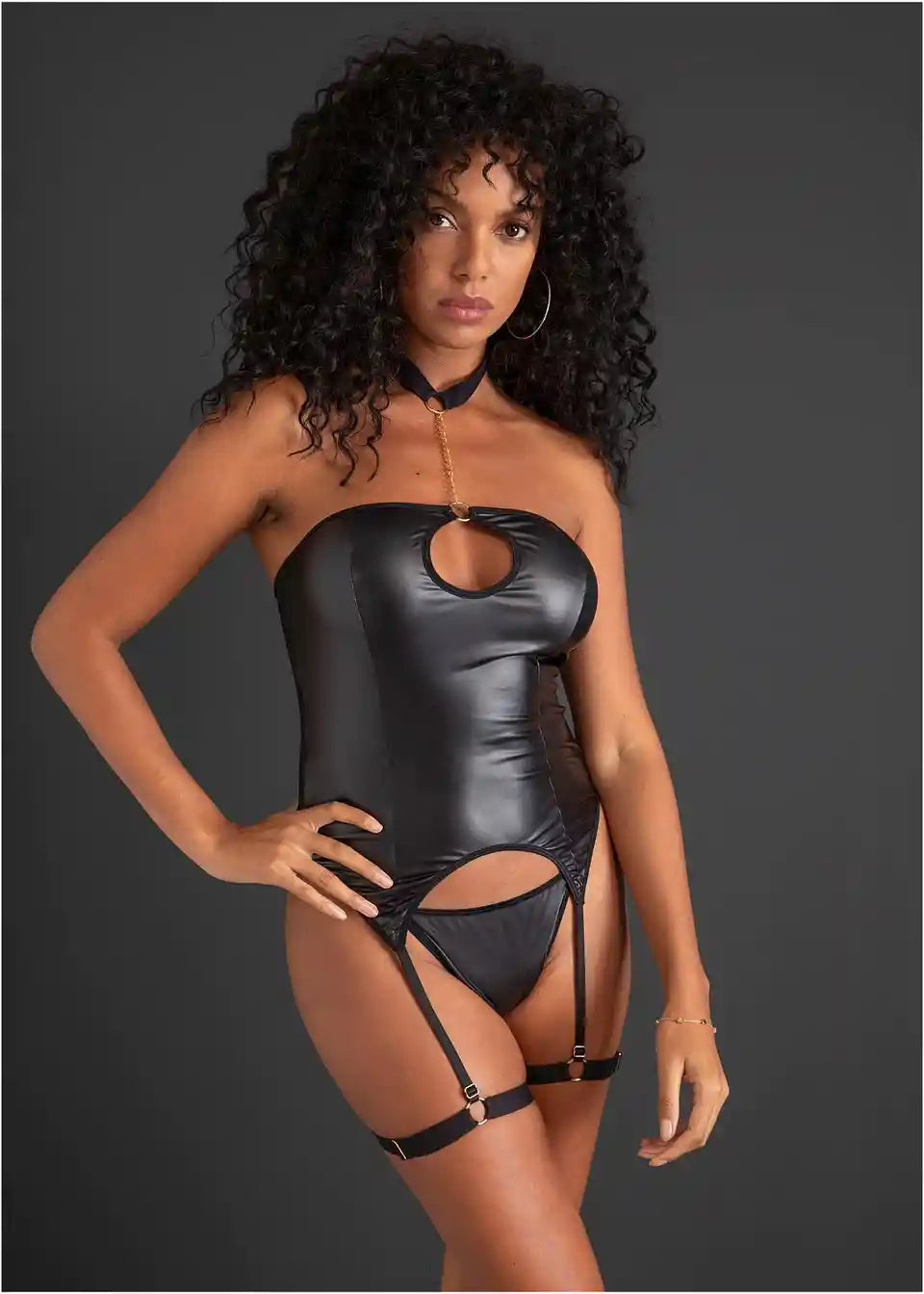 Životec s pasom z držkami za nogavice v mokrem videzu in string