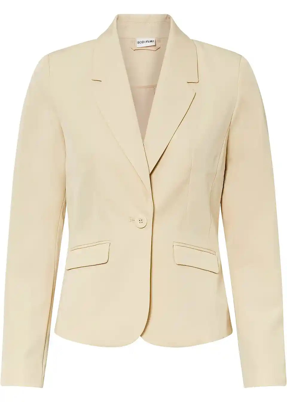 Žensko krojen kratek blazer s čudovitimi žepki s preklopom.