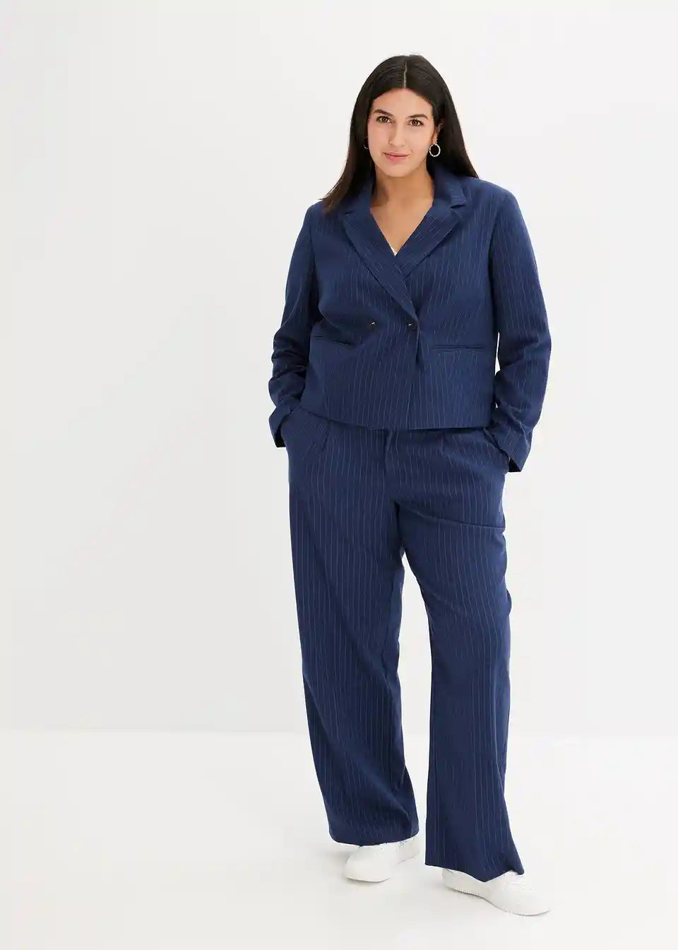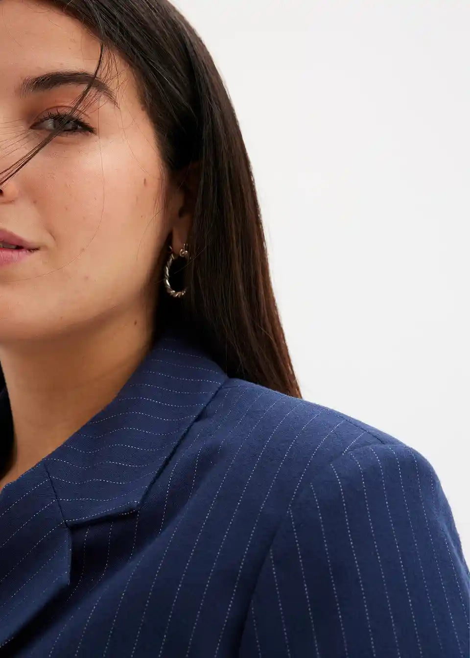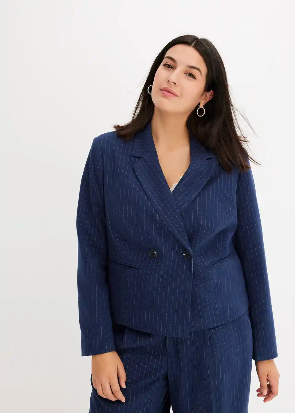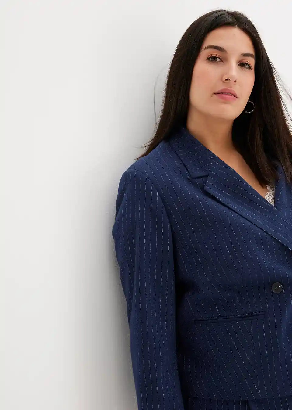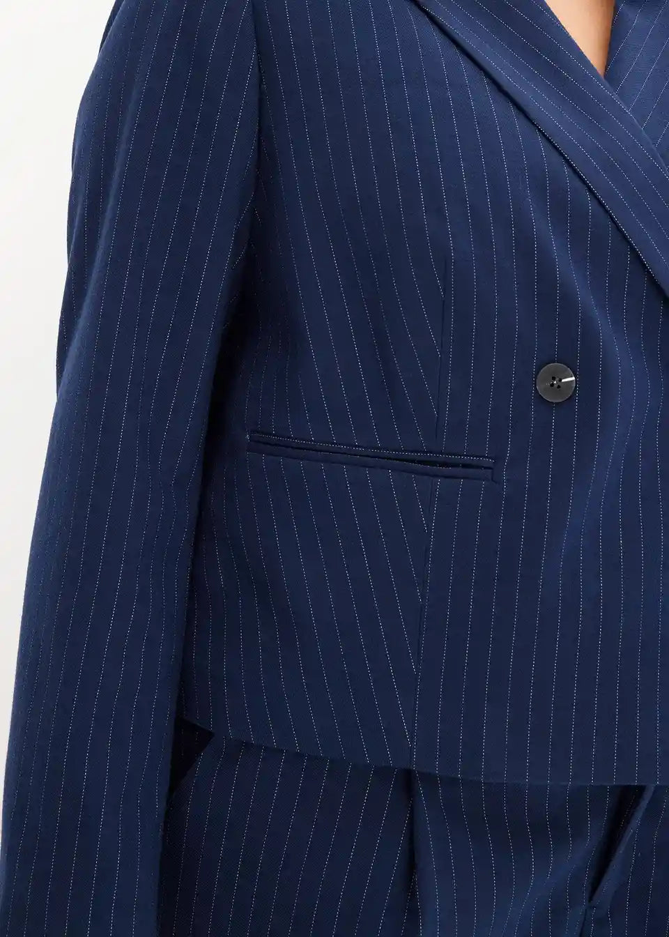 Kratek blazer z igličastimi črtami in rever ovratnikom
