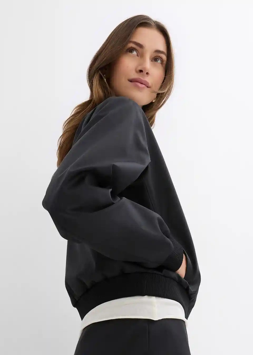 Kratek bluzon v oversized kroju z rahlo podaljšanimi rameni in elastičnim robom