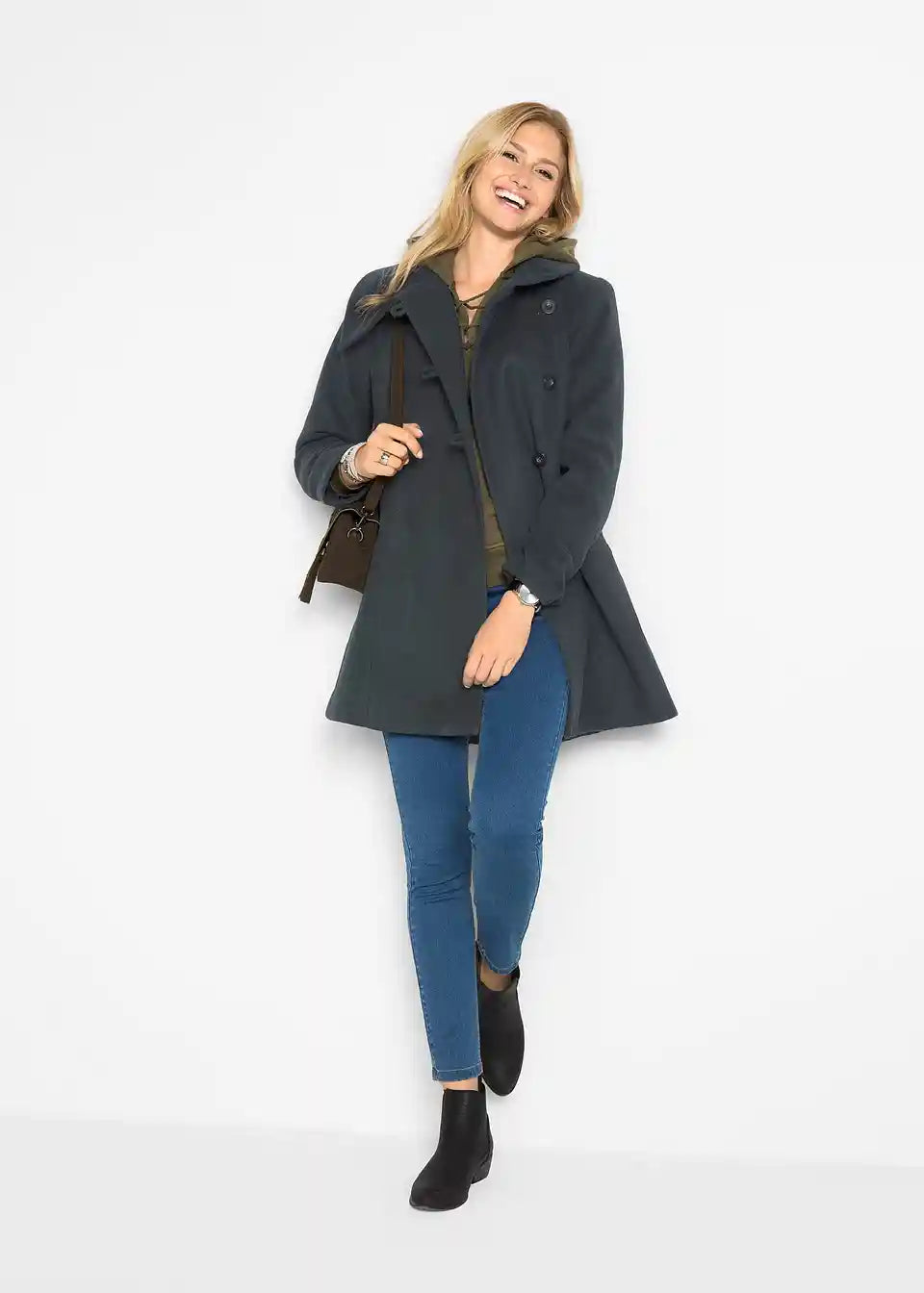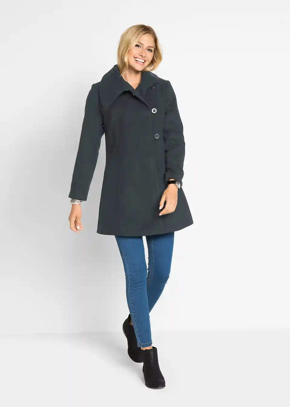 Ta modni plašč iz kolekcije znamke bpc je prava izbira za prosti čas in pot v pisarno. Mehki plašč ima izstopajoč širok ovratnik in se na sprednjem delu zapenja s tremi velikimi gumbi. Ujema se z različnimi priložnostmi in ga lahko kombinirate z lahkotnimi ali elegantnimi oblačili.