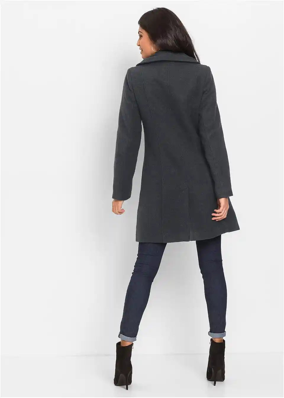 Plašč s stoječim ovratnikom in dvema žepoma spredaj. Dolžina pri velikosti 38 približno 90 cm.