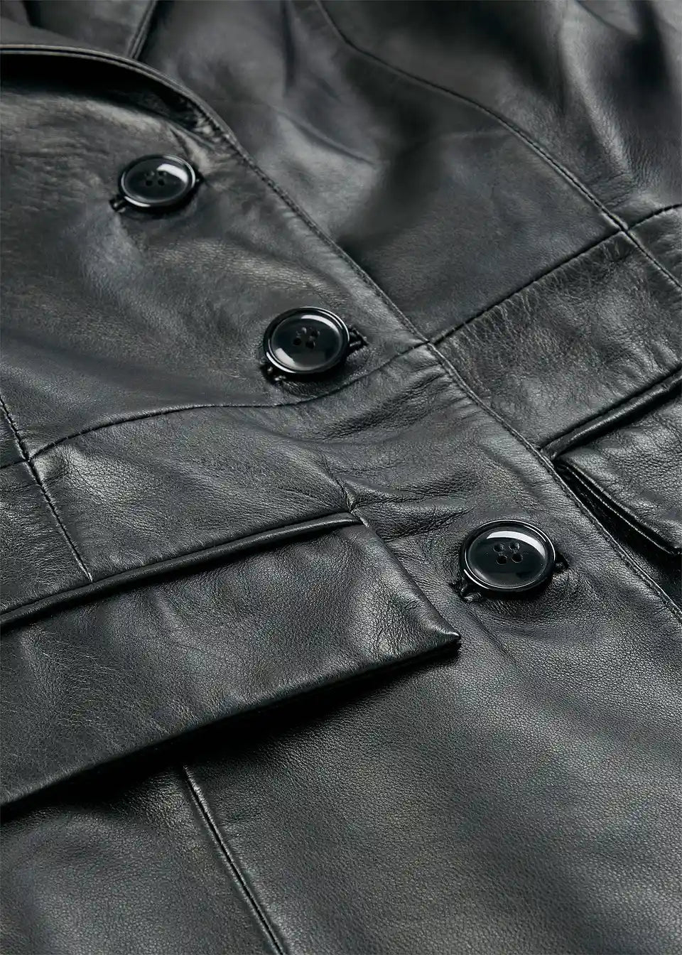 eleganten blazer plašč iz usnja z rever ovratnikom in stranskimi žepi
