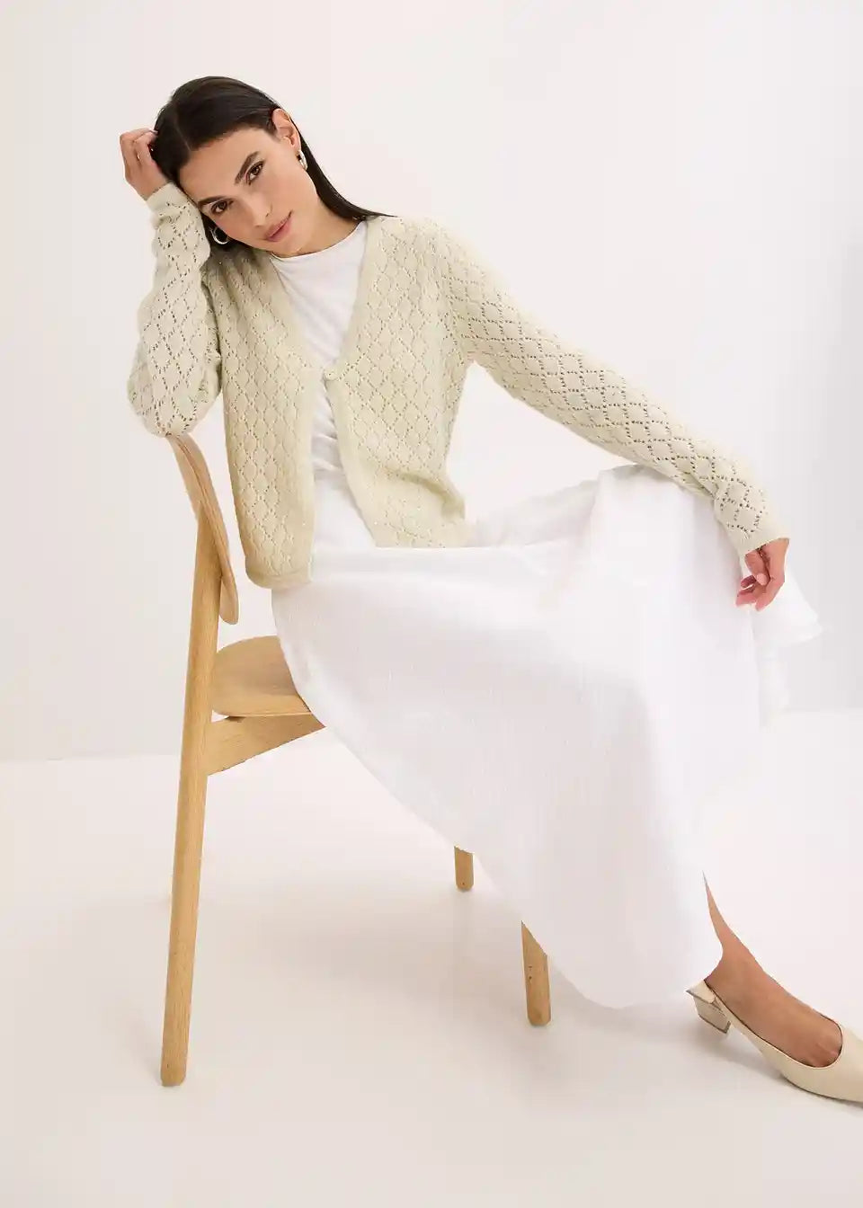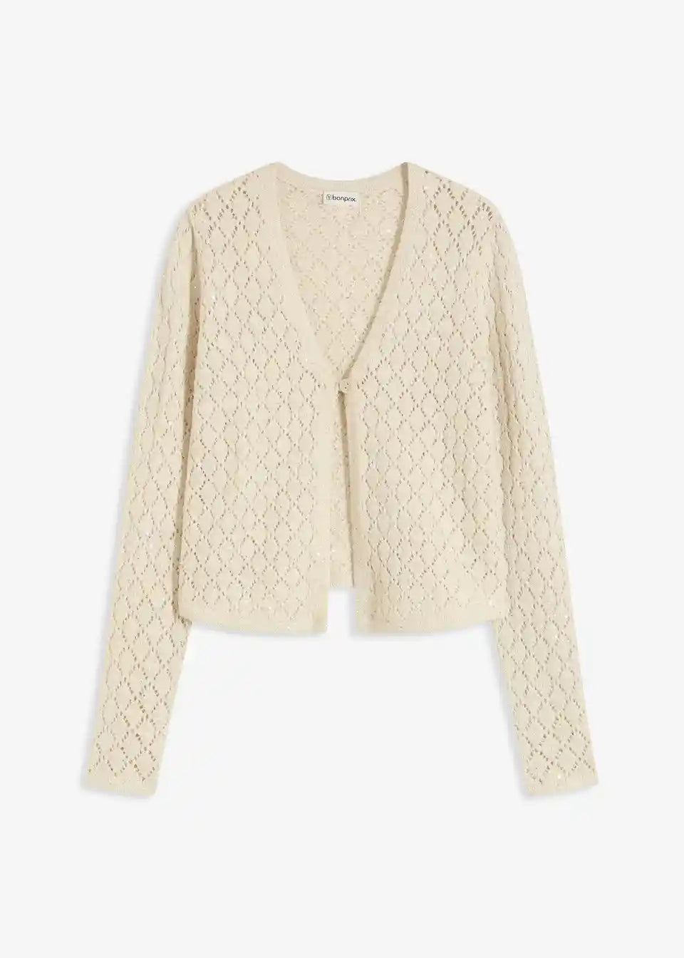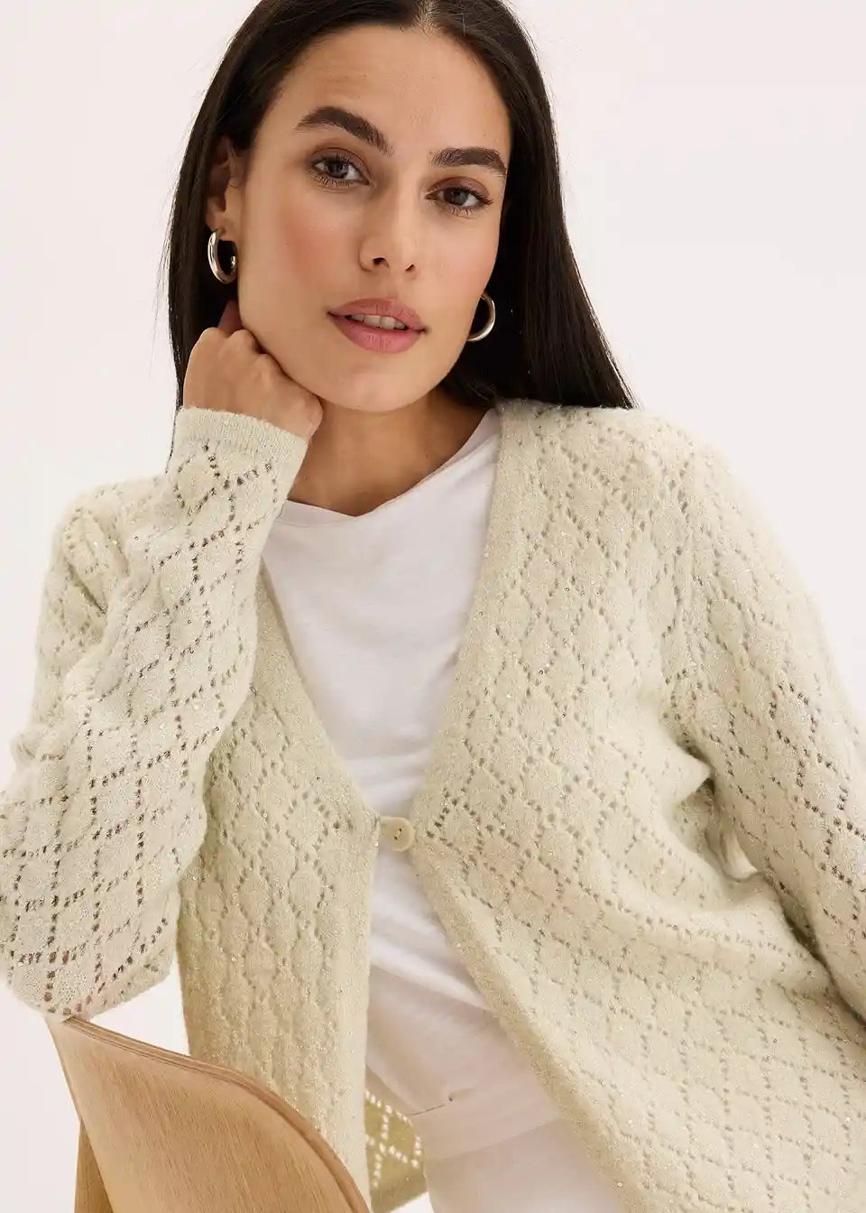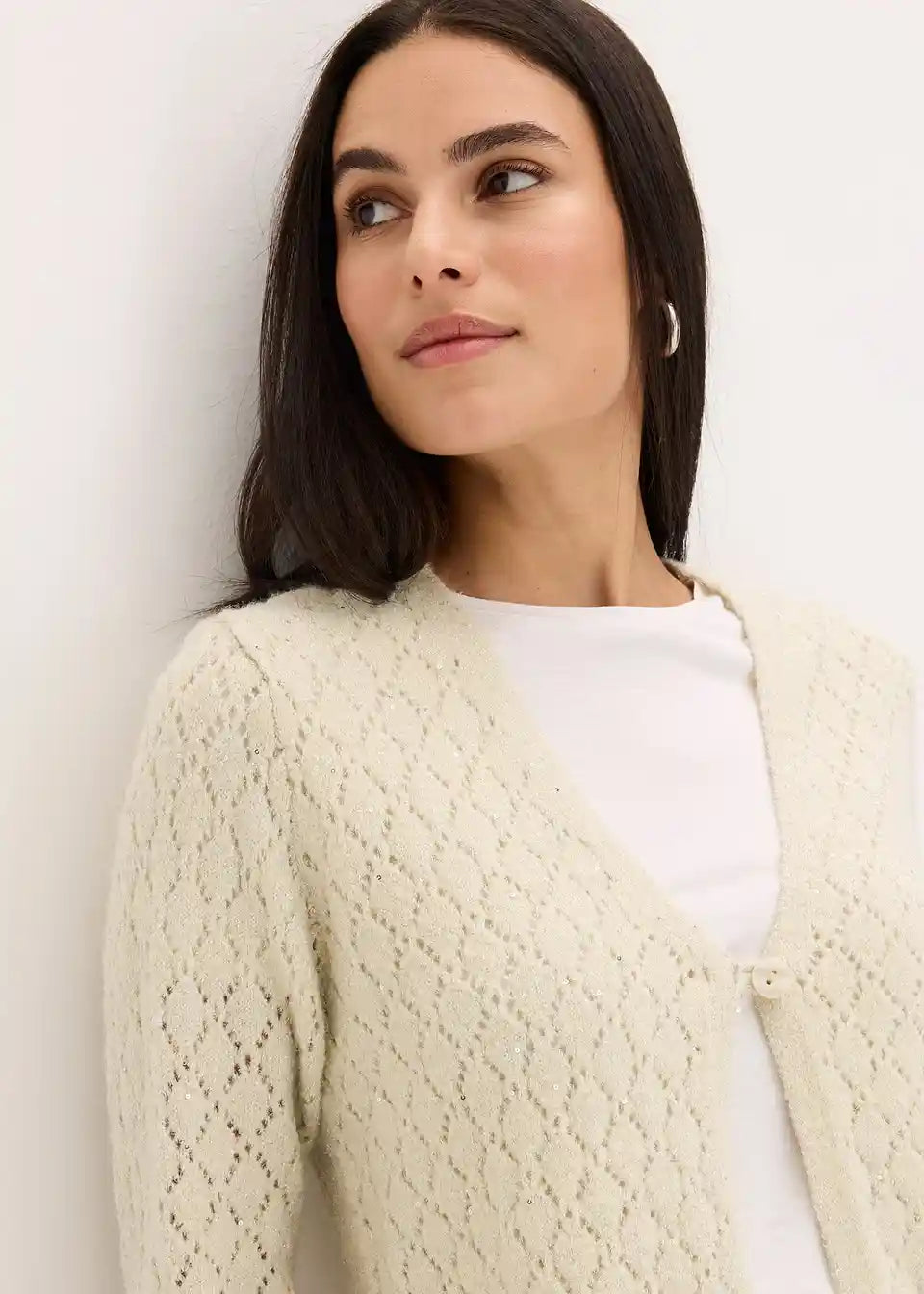 Poletni pleten jopič z bleščicami in zapenjanjem na gumbe