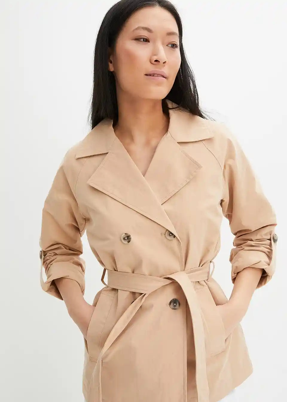 Eleganten kratek trenčkot