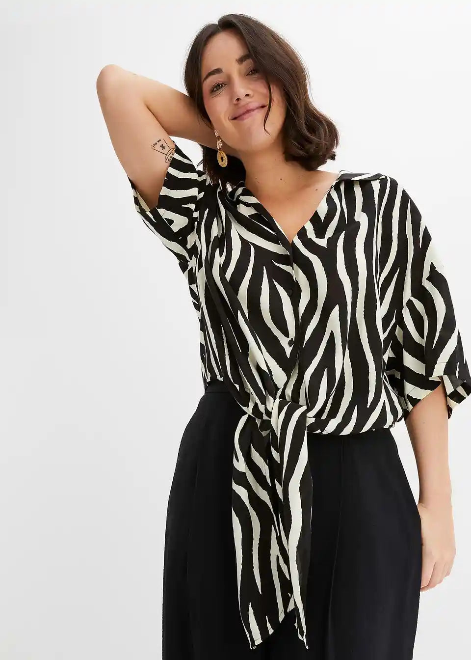 Kratka bluza s podrobnostjo vozla iz viskoze