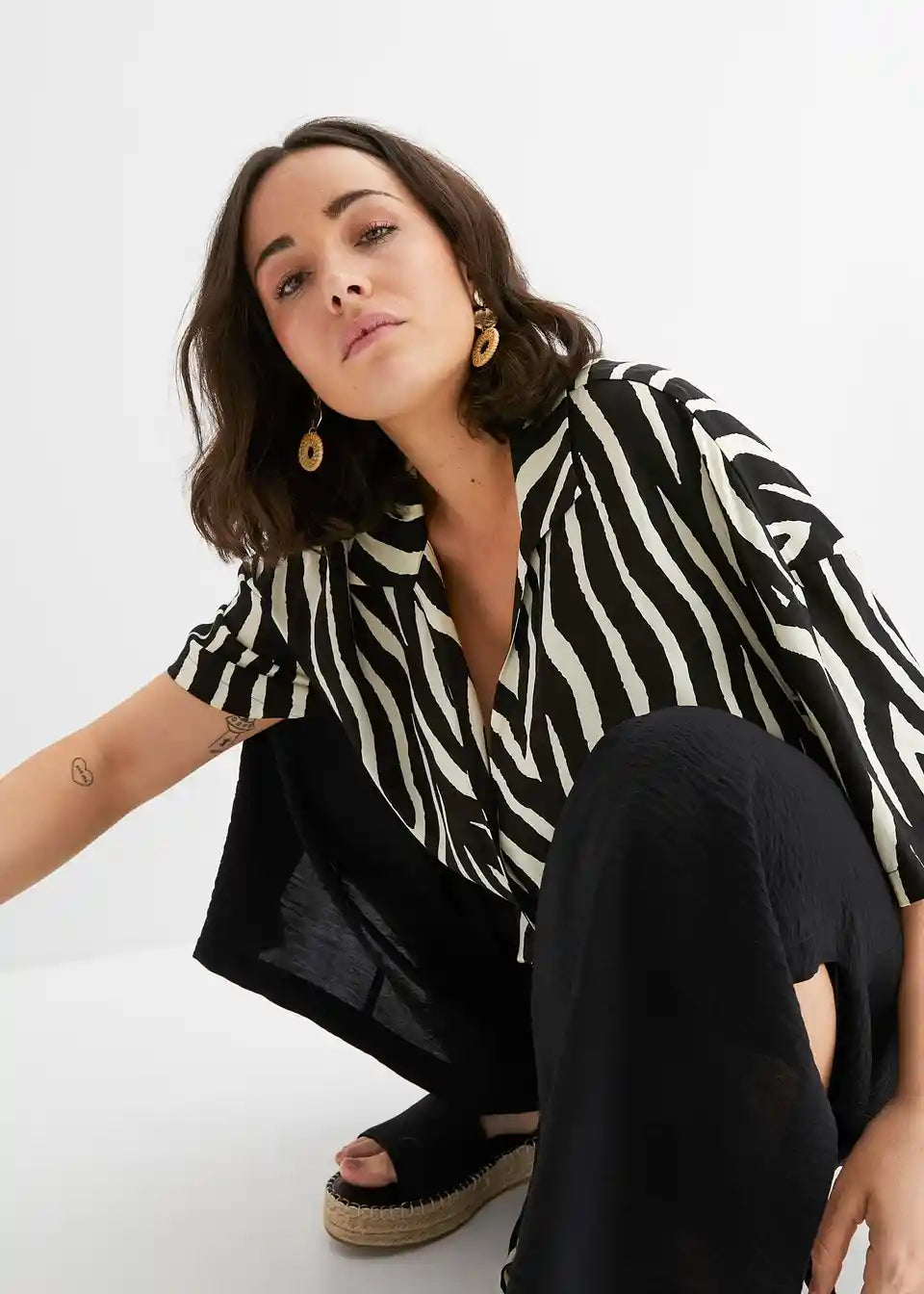 Bluza s kratkimi rokavi iz padajoče viskoze