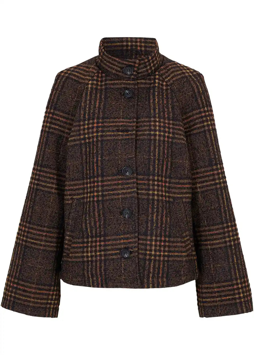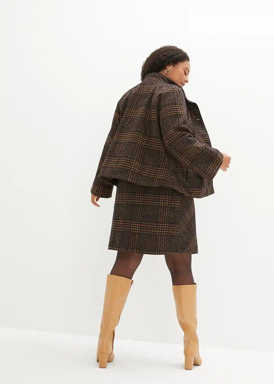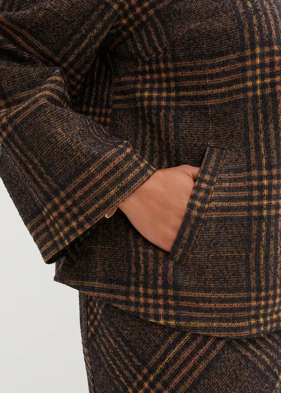 Kratka jakna s karirastim vzorcem in modno ohlapnim krojem