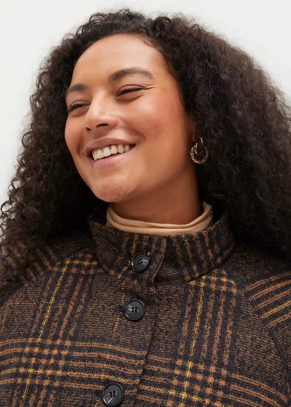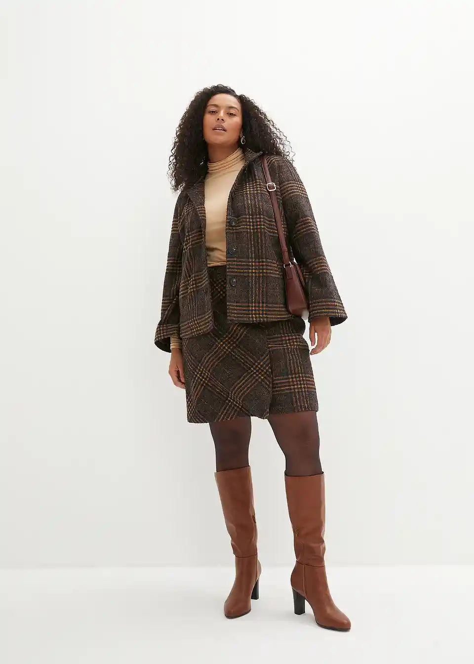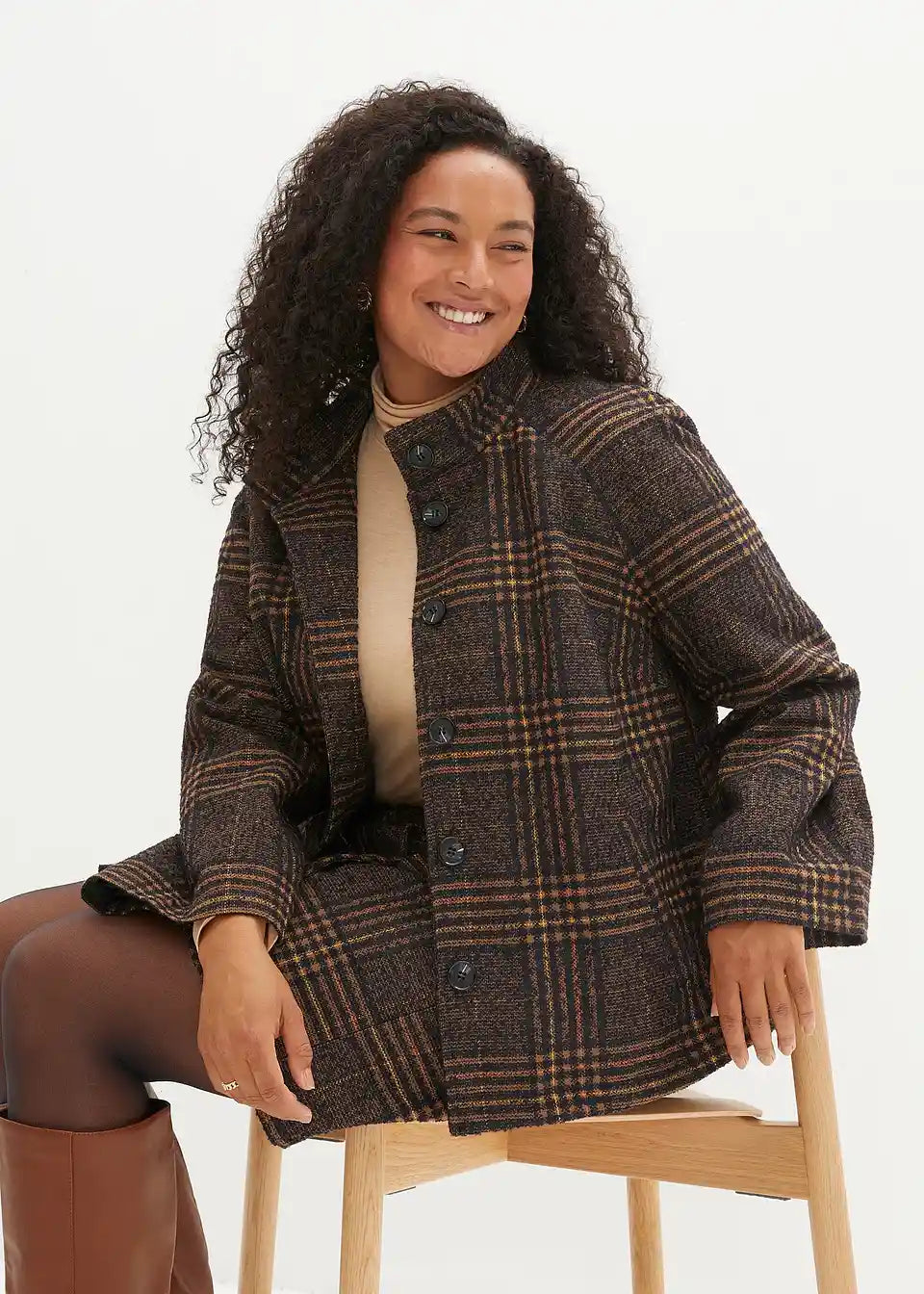 Kratka jakna s karirastim vzorcem in modno ohlapnim krojem