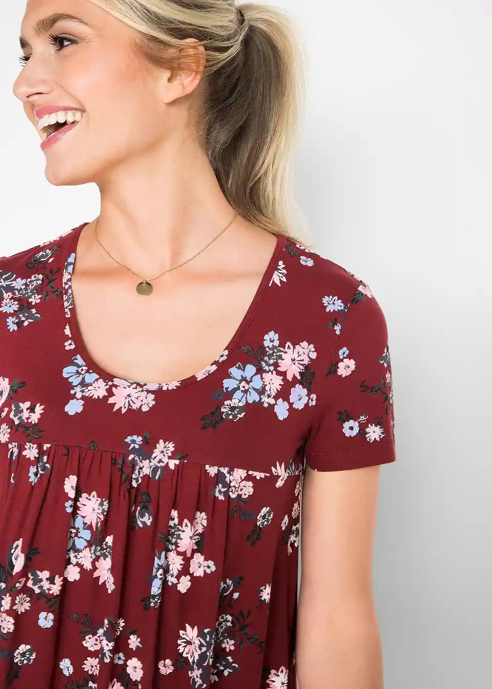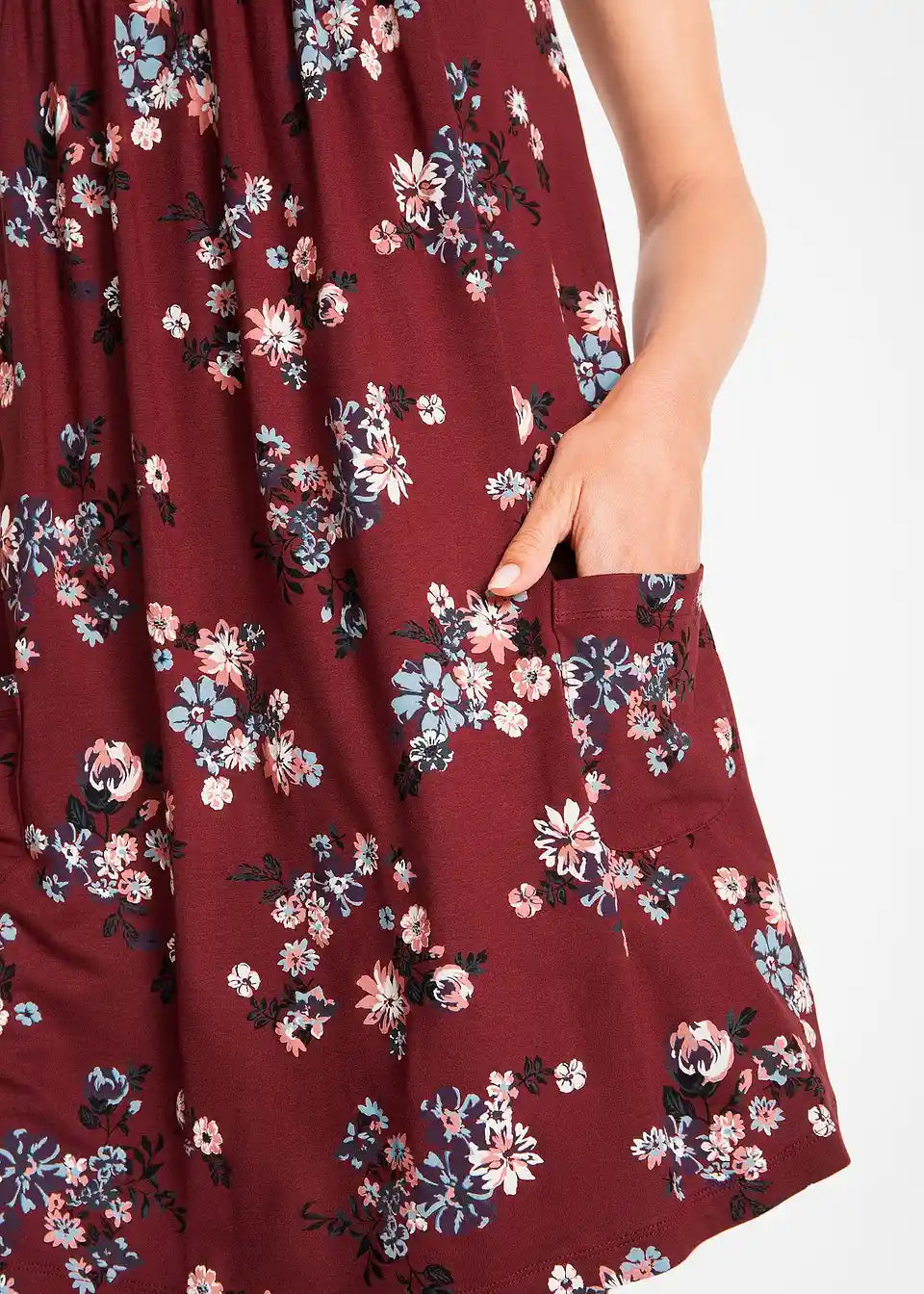 Figura objemajoča obleka iz jerseya iz trajnostne viskoze s poletnim potiskom.