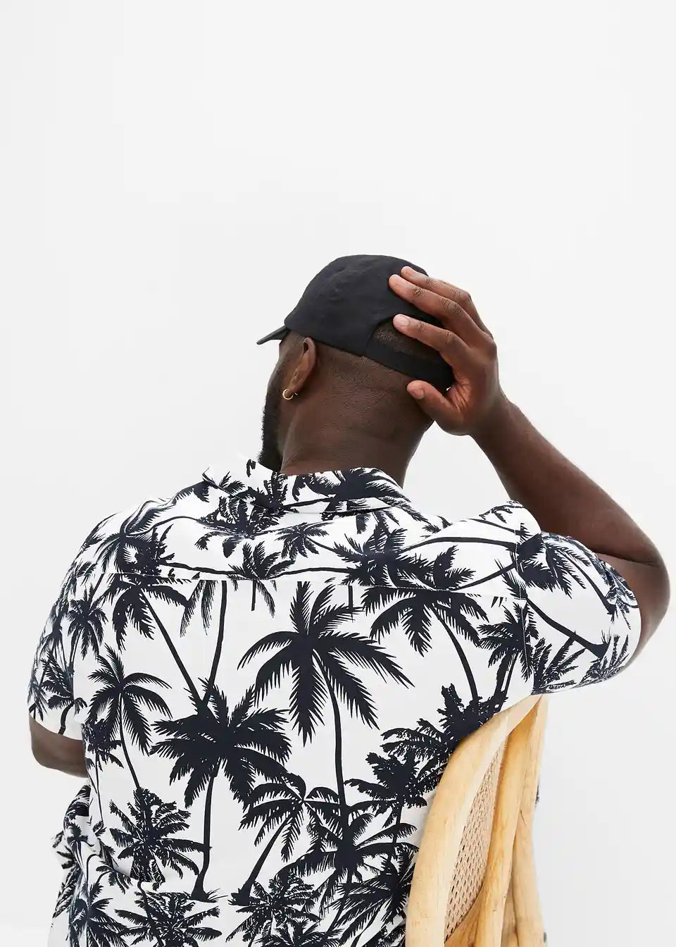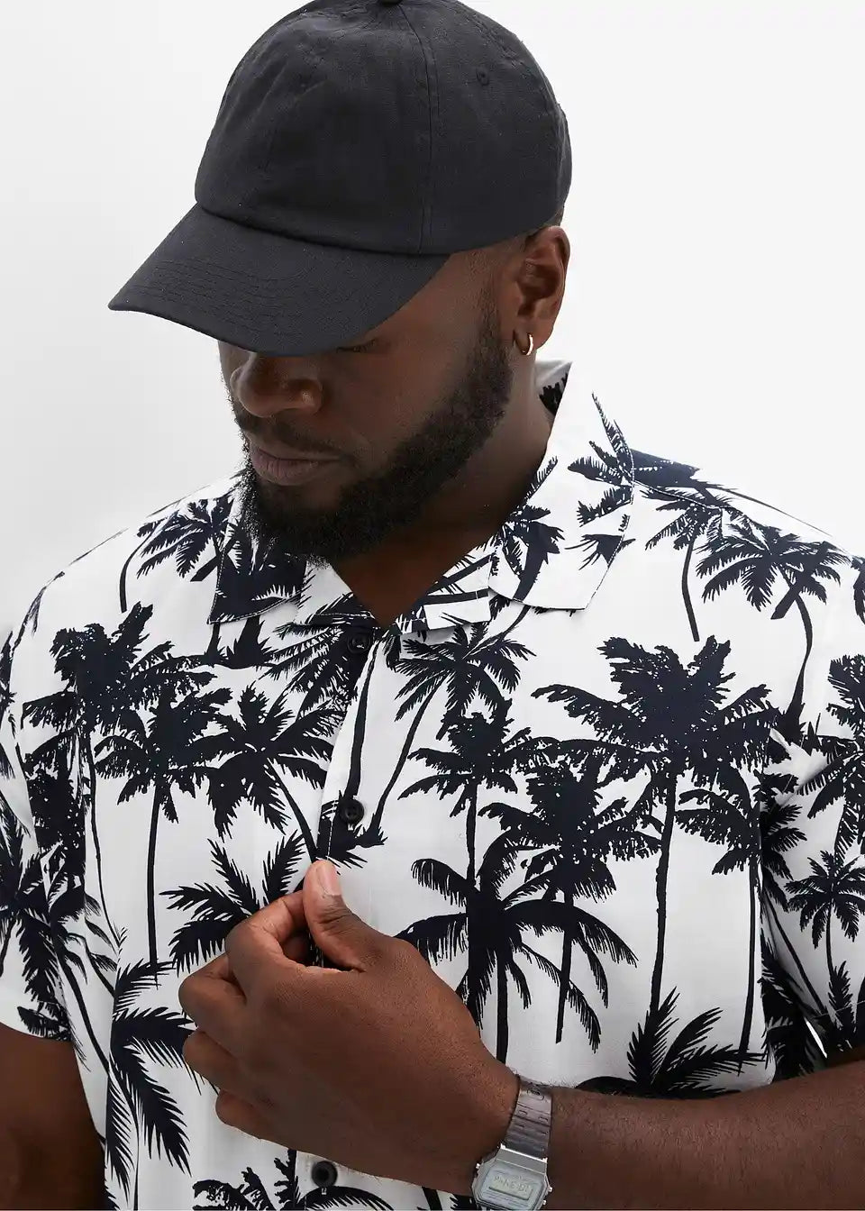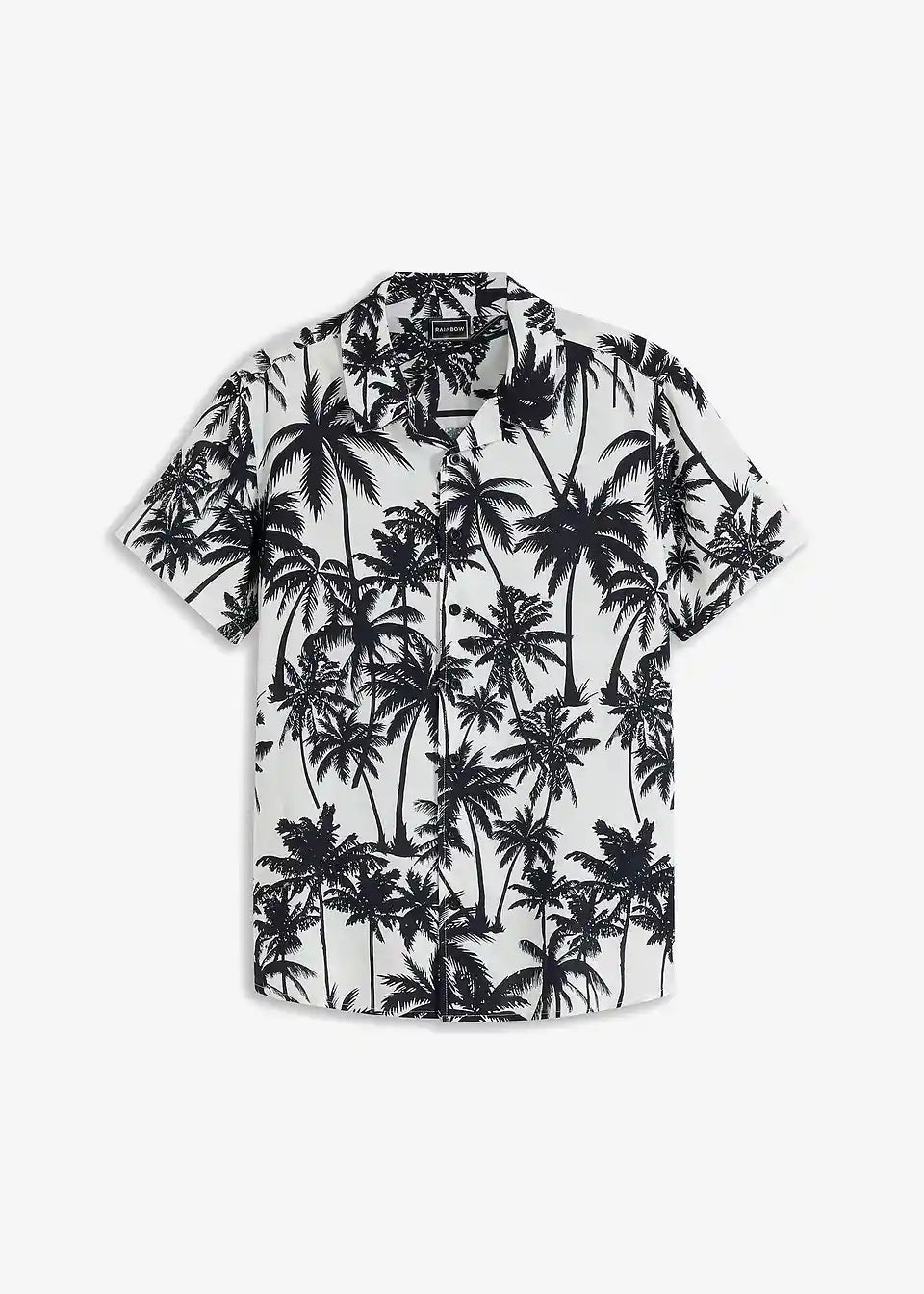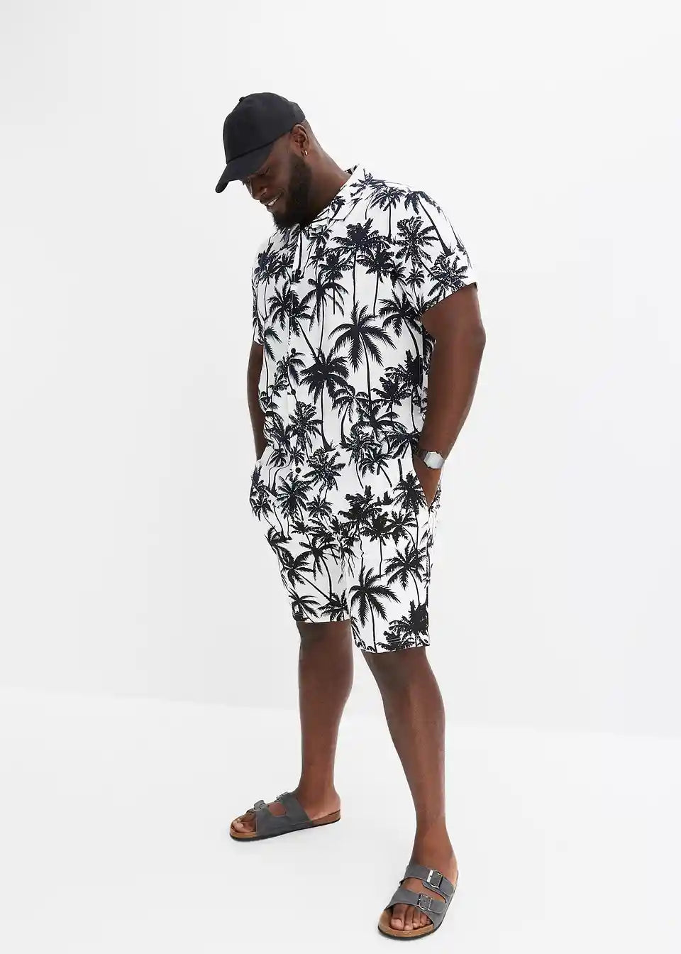 moderna kratka sleeva srajca z modnim poletnim vzorcem po celotni površini
