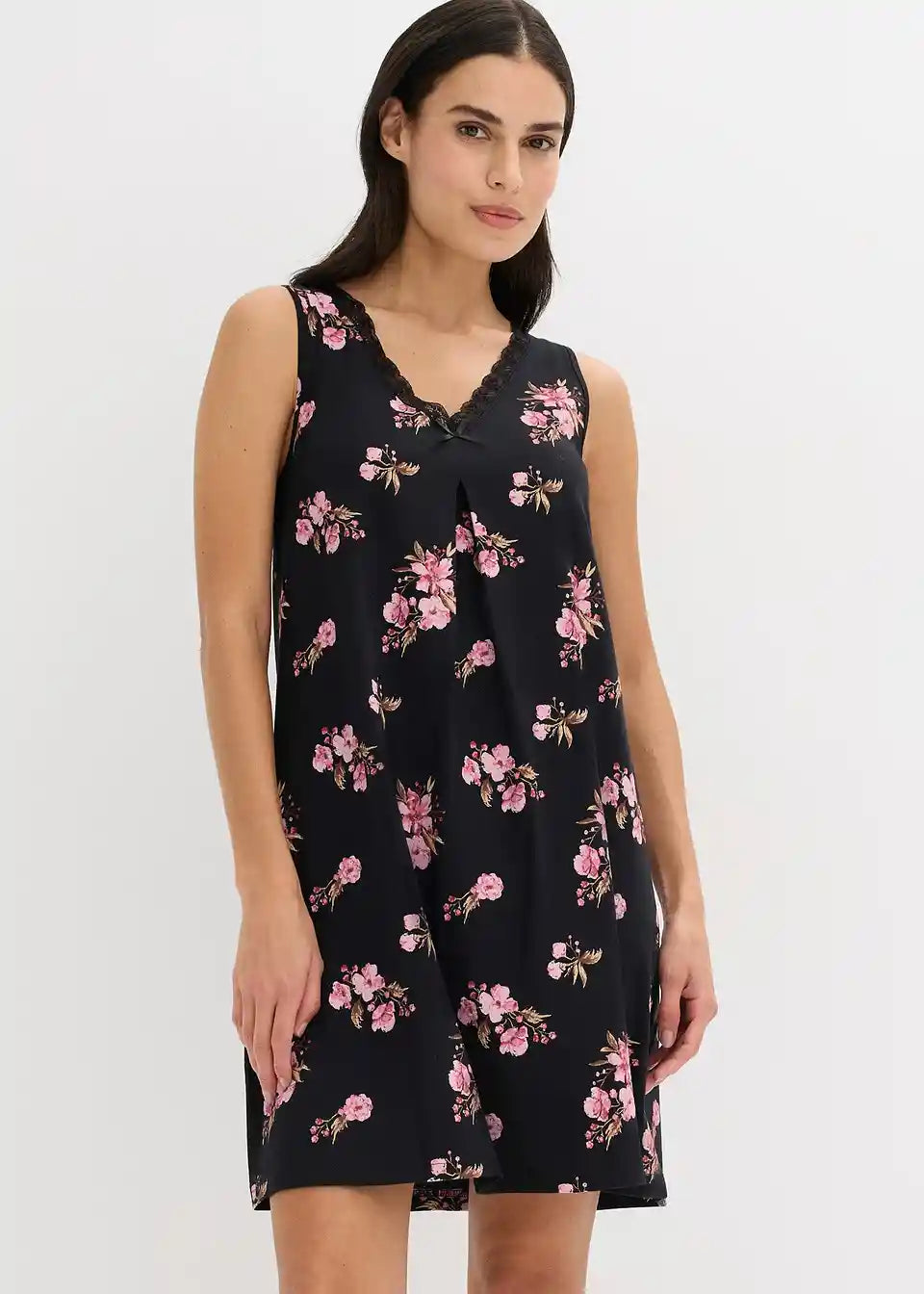 Udobna spalna srajca s čudovitim cvetličnim potiskom in kakovostno čipko na izrezu