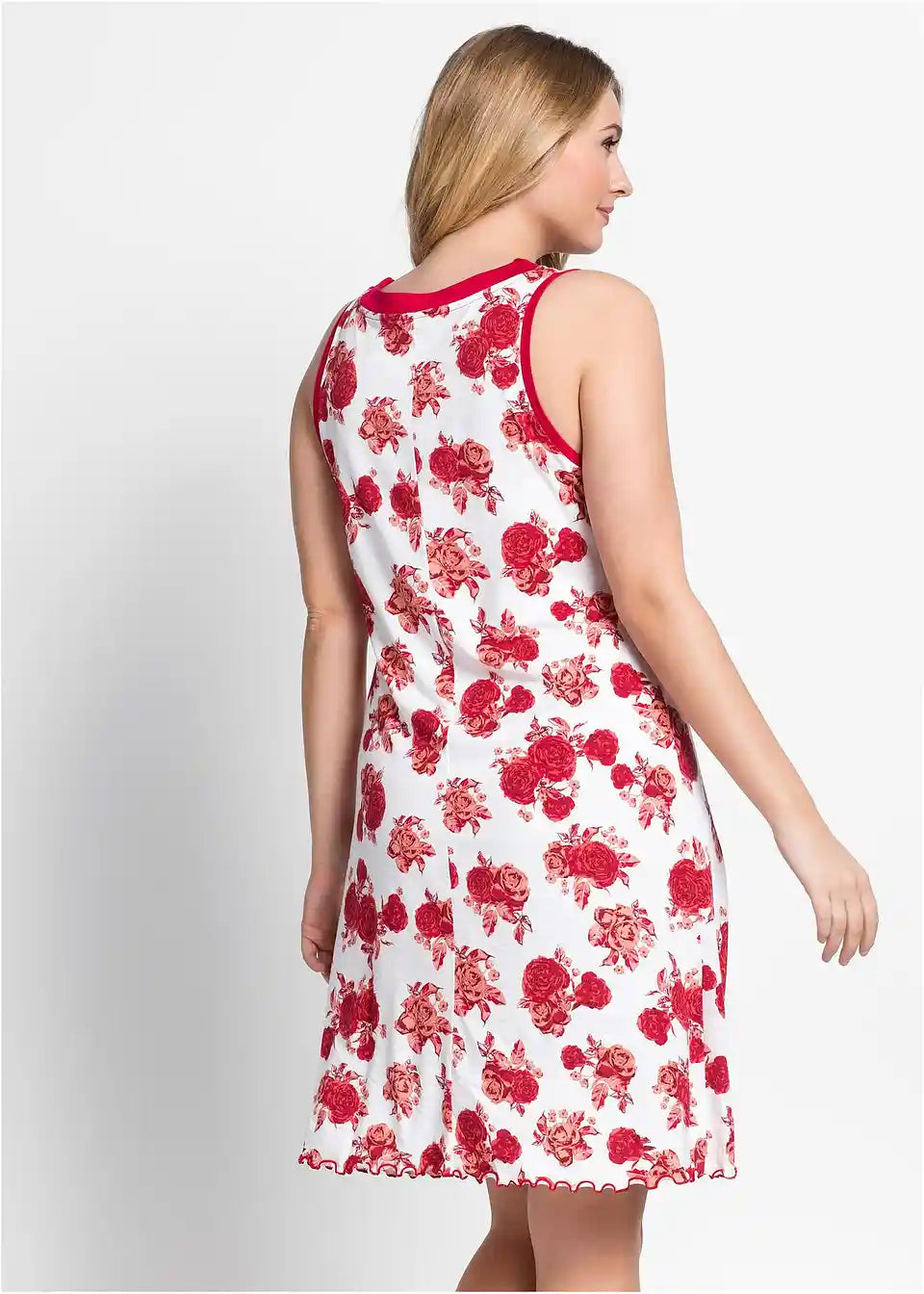 Nočna obleka iz ležernega materiala ima lepo A-krojeno obliko. V-izrez zaokrožuje videz.