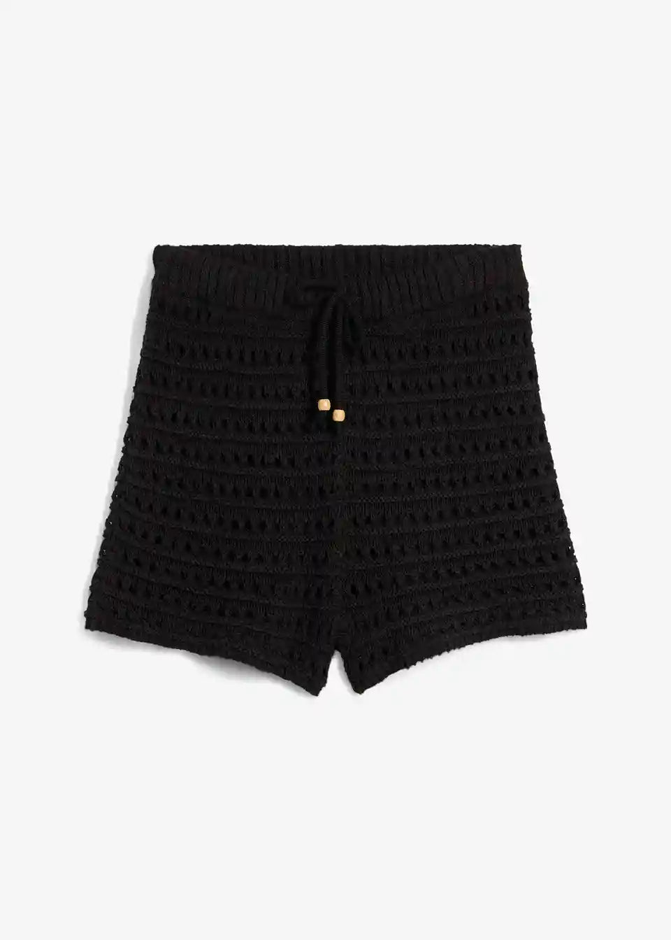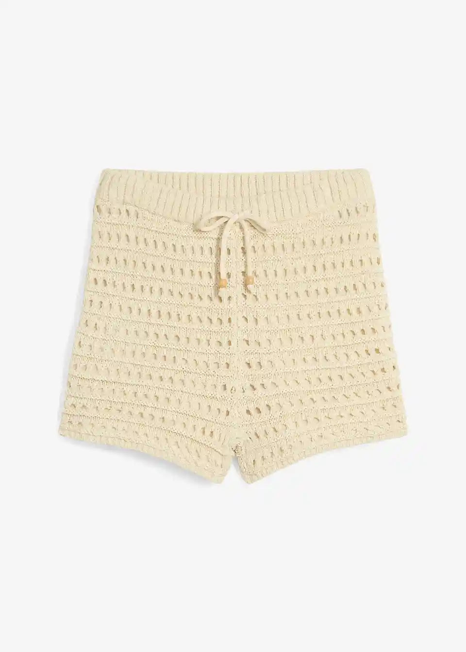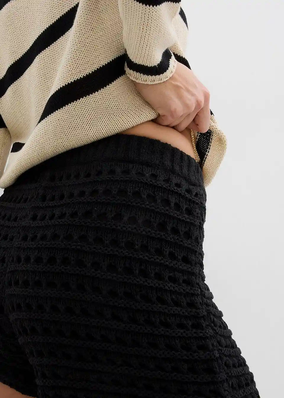 Poletne pletene kratke hlače z luknjičastim vzorcem, podložene