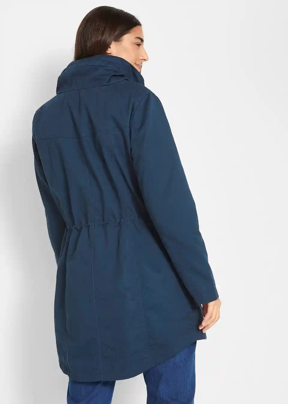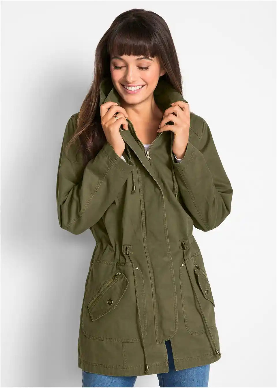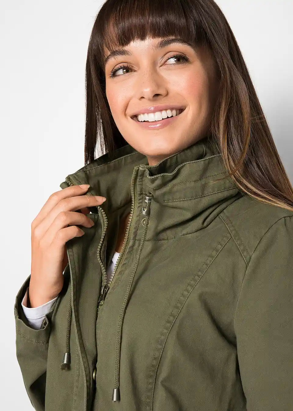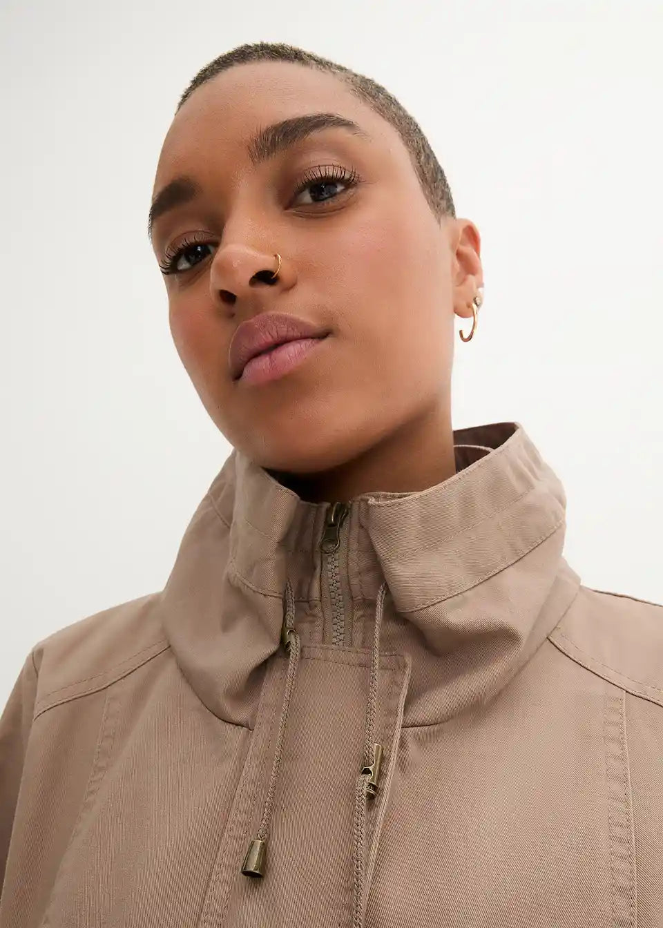 Bombažna kratka parka s pokončnim ovratnikom v tajliranem kroju