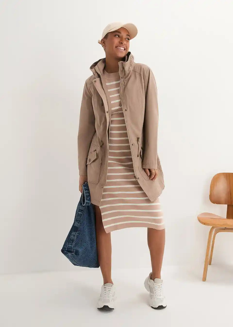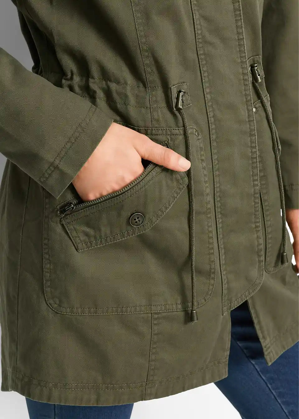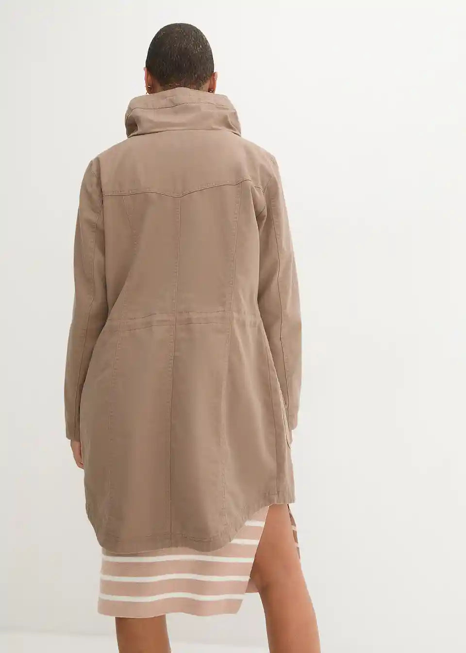 Bombažna kratka parka s pokončnim ovratnikom v tajliranem kroju