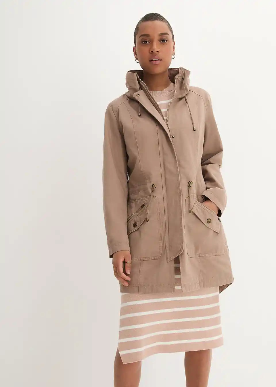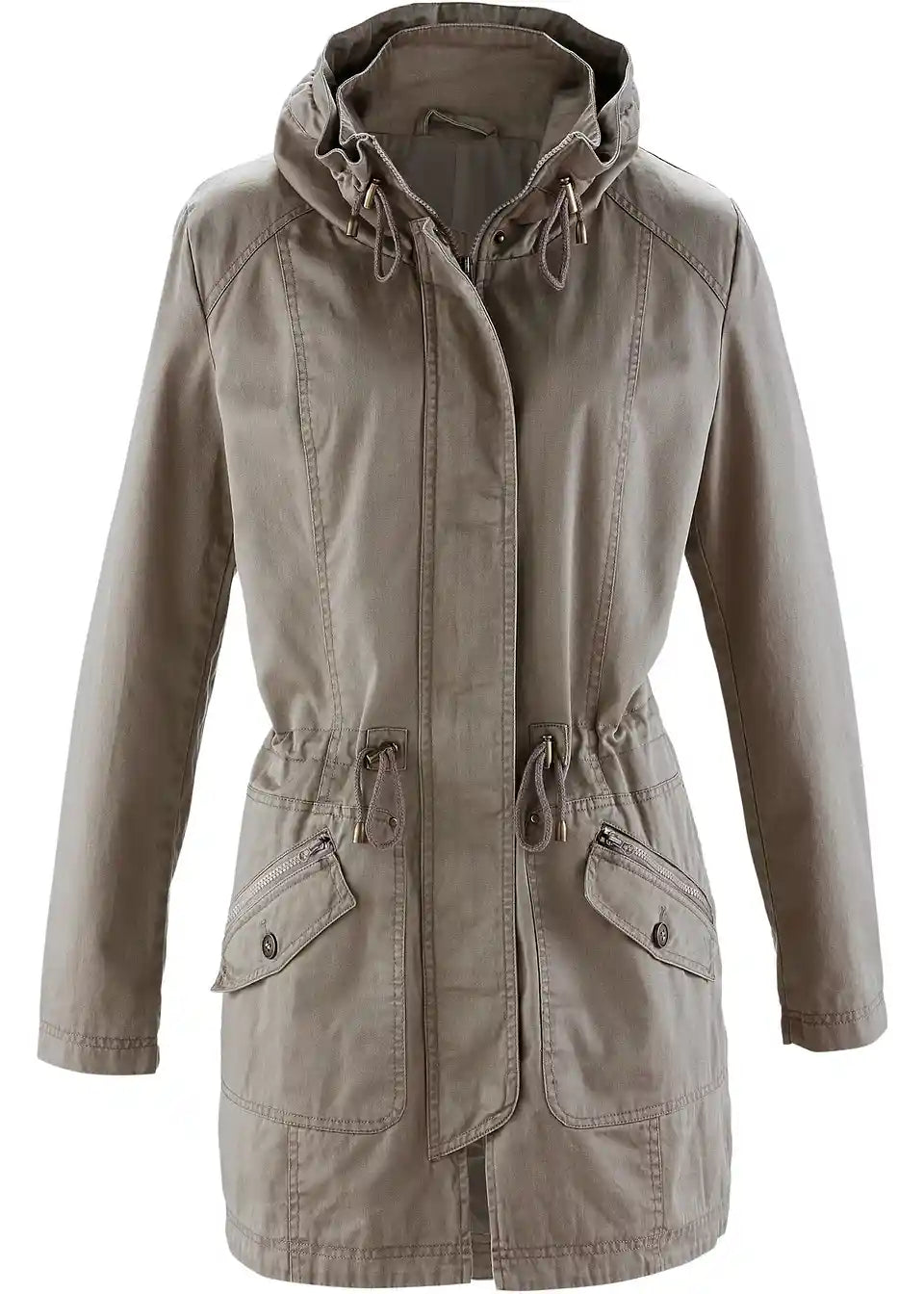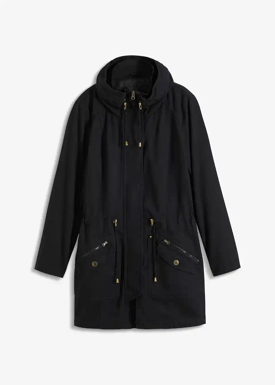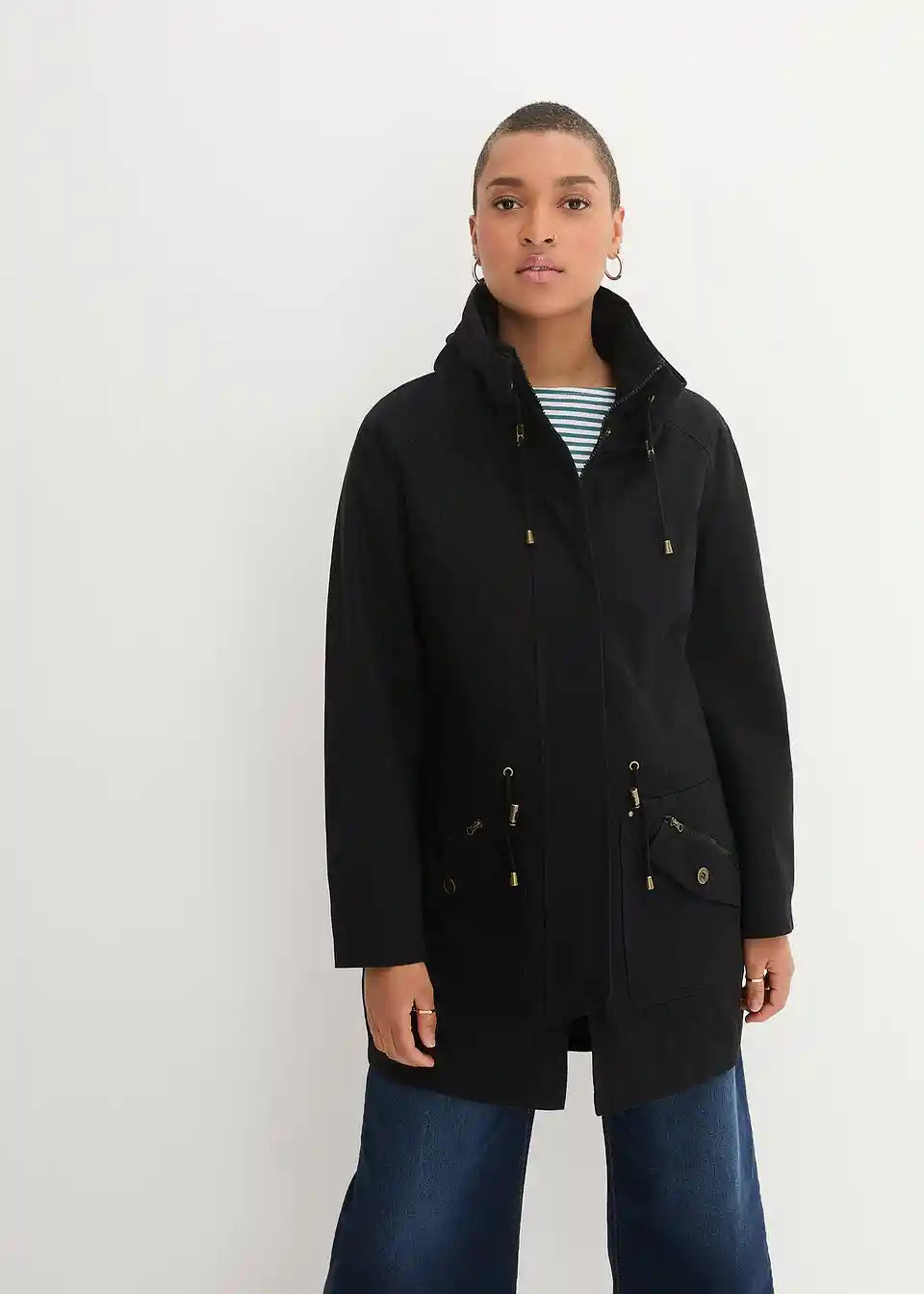 Bombažna kratka parka s pokončnim ovratnikom v tajliranem kroju