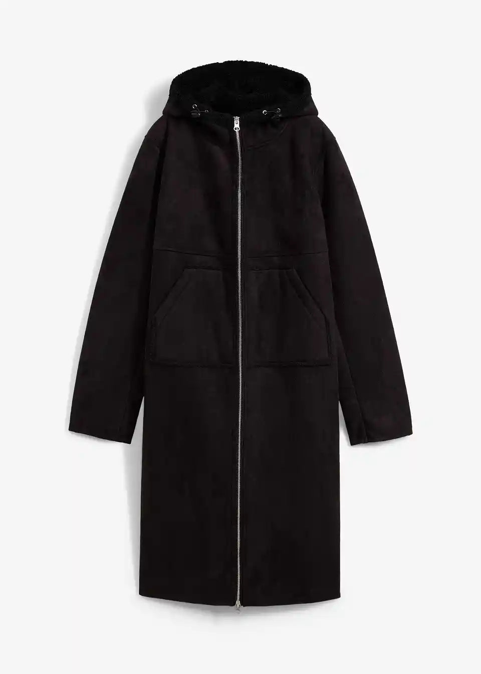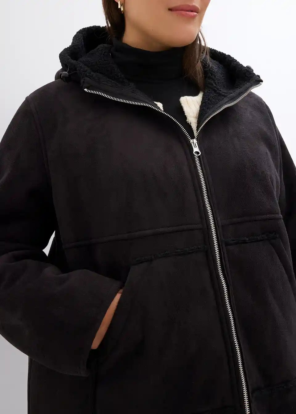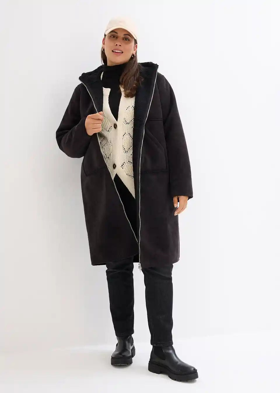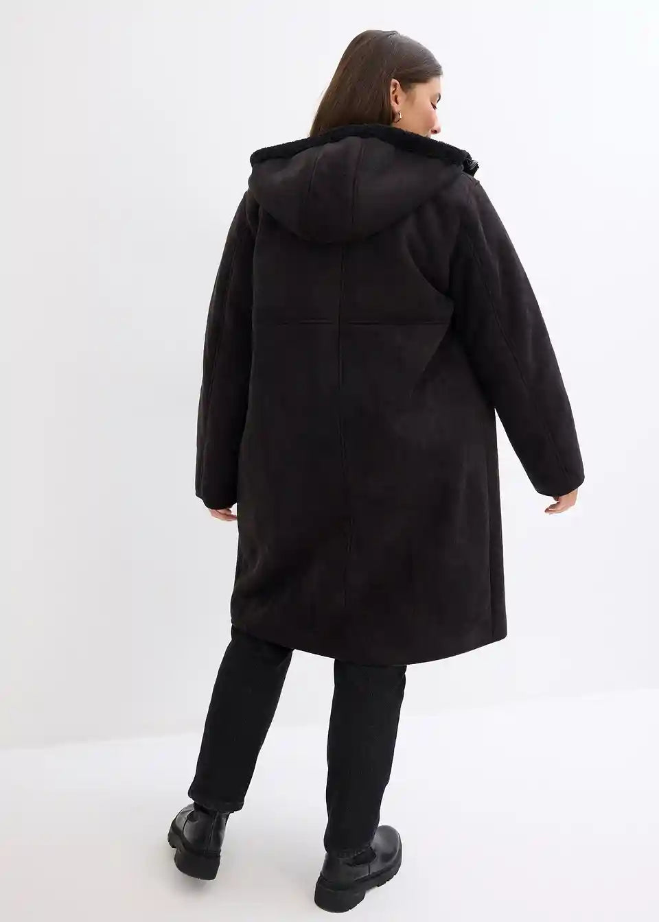 Oversized plašč iz umetnega usnja s teddy podlogo