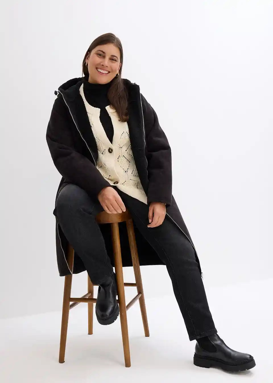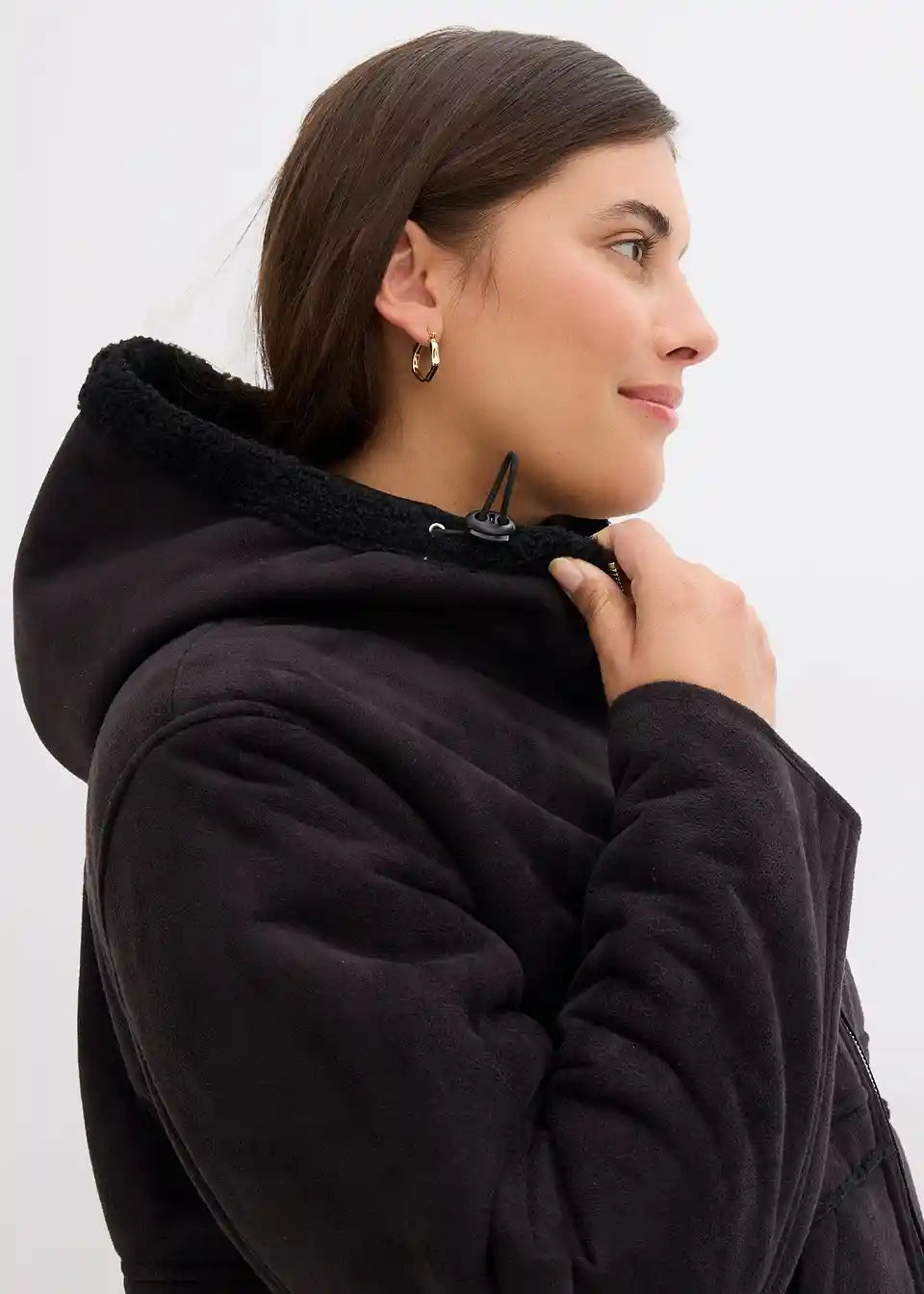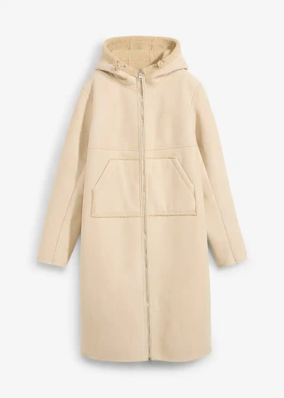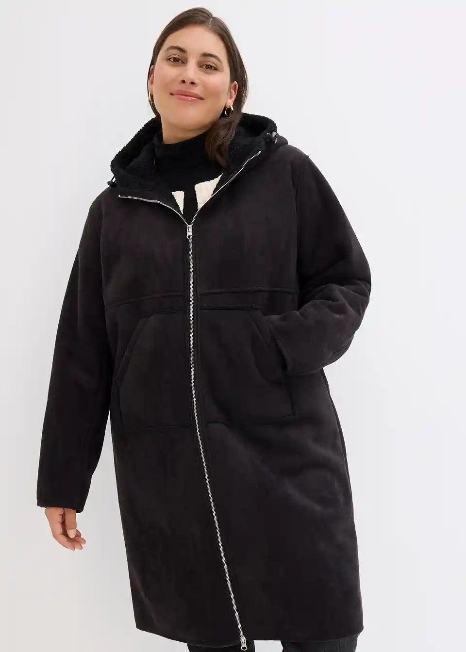 Oversized plašč iz umetnega usnja s teddy podlogo