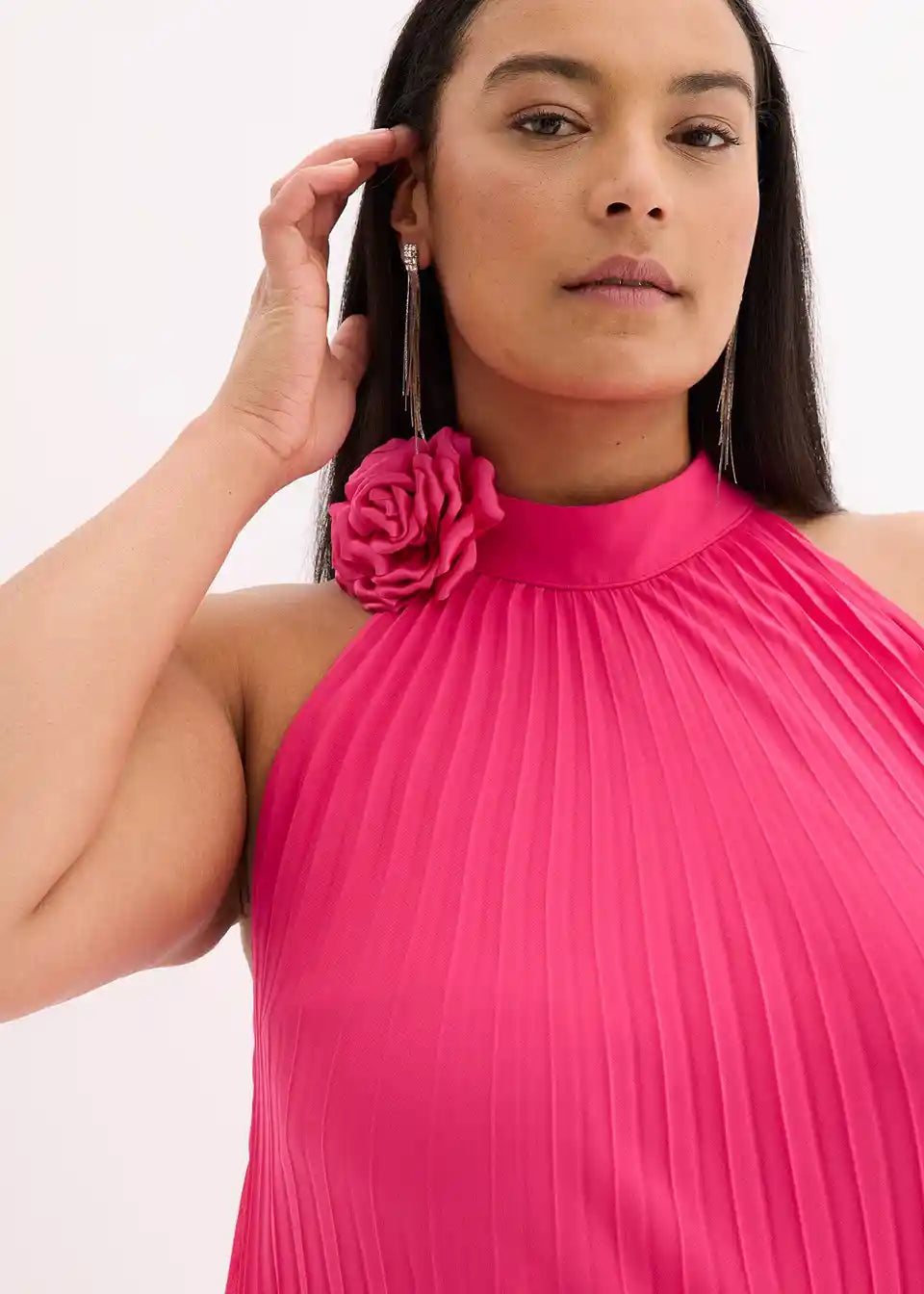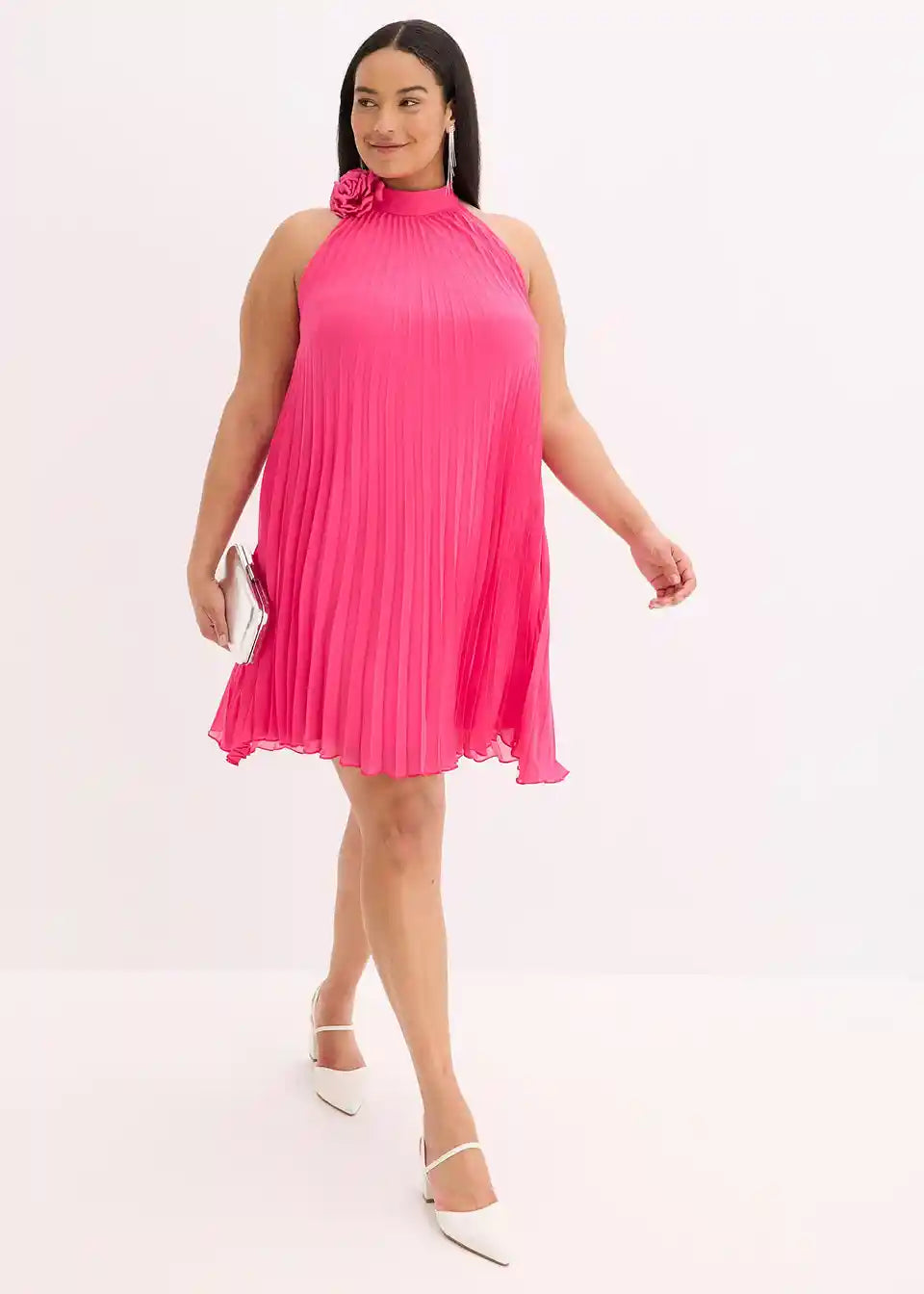 Obleka iz šifona s plisejem in aplikacijo s cvetovi