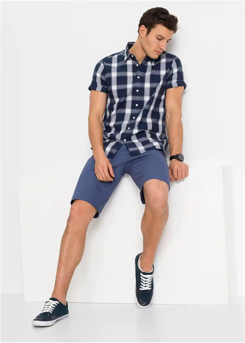 Kratkoročna srajca z modnim vzorcem karo