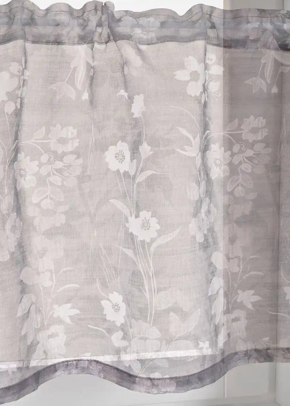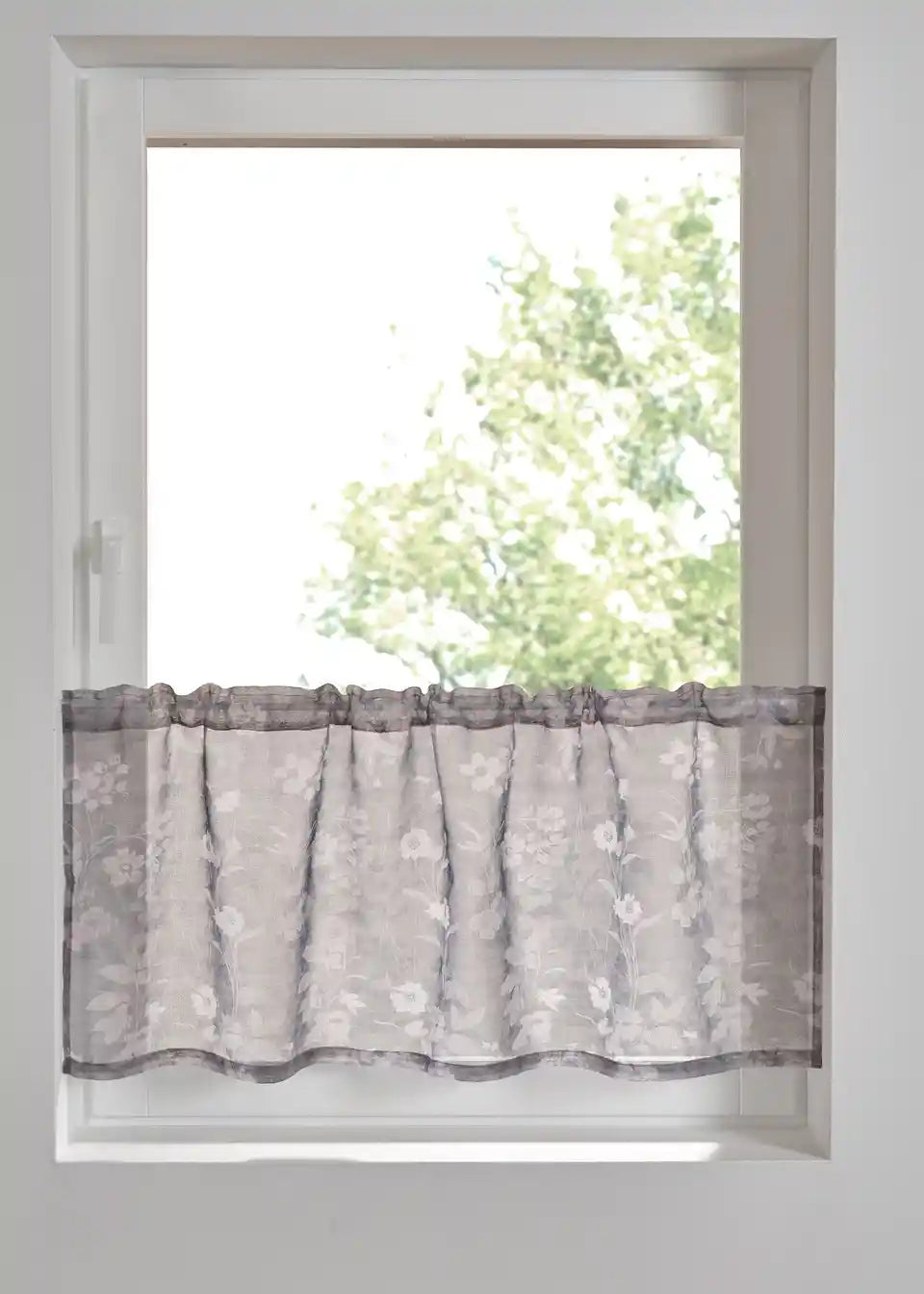 Kuhinjska zavesa ima moden potisk in je izdelana iz čudovite strukturirane tkanine.