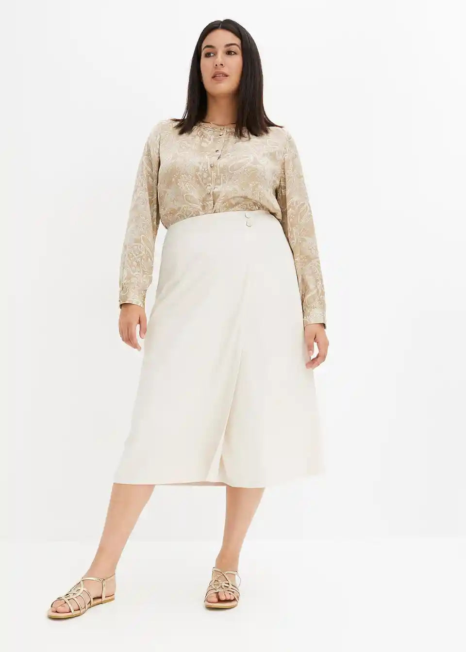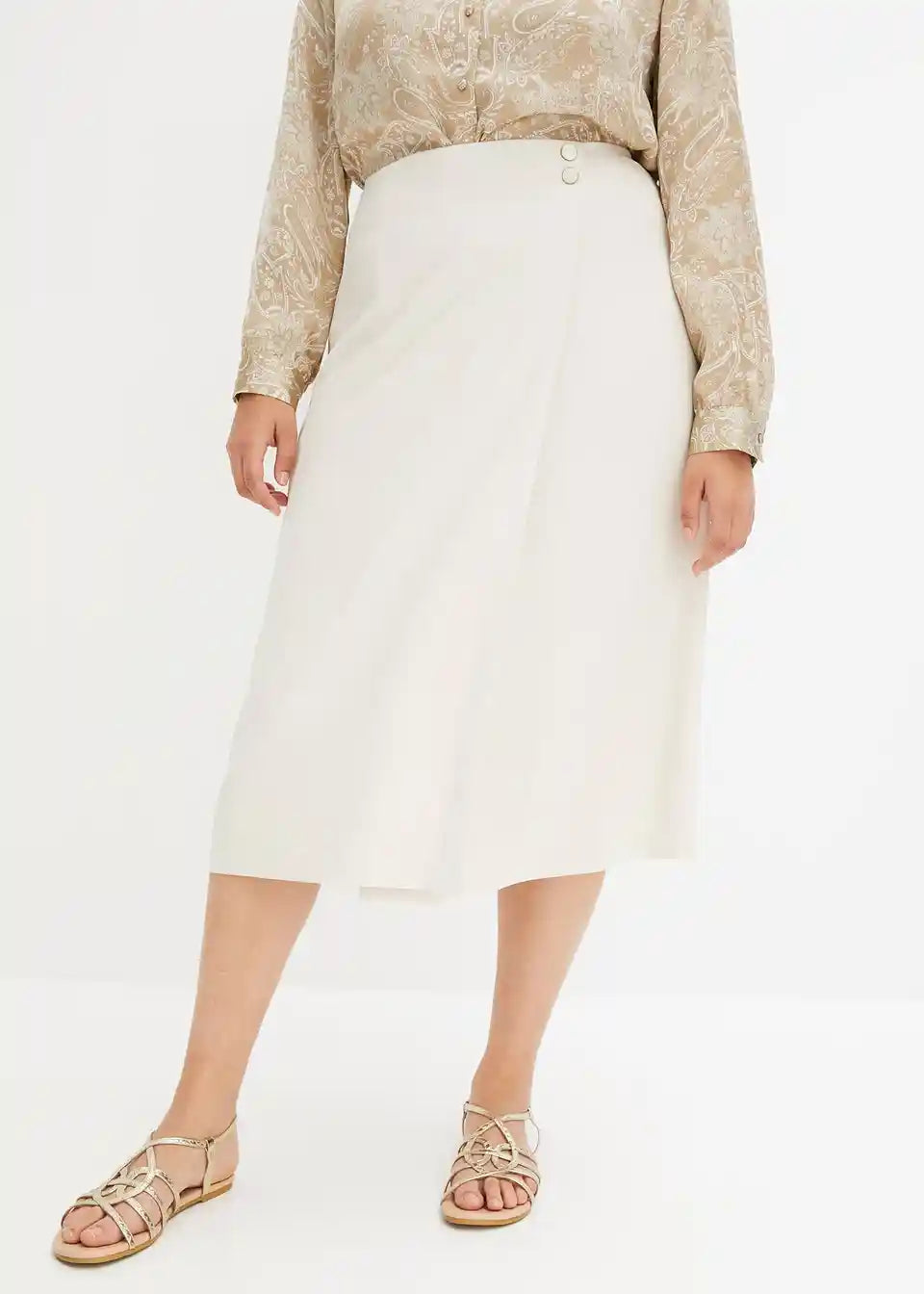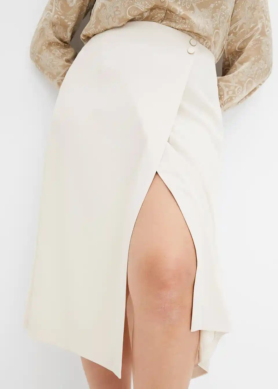 modno krilo v videzu ovijanja z dekorativnimi gumbi na pasu